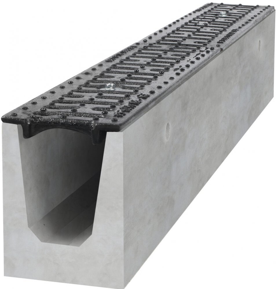Odvodňovací betonový žlab BIELBET B125 s litinovou mříží 1000 x 130 x 160 mm