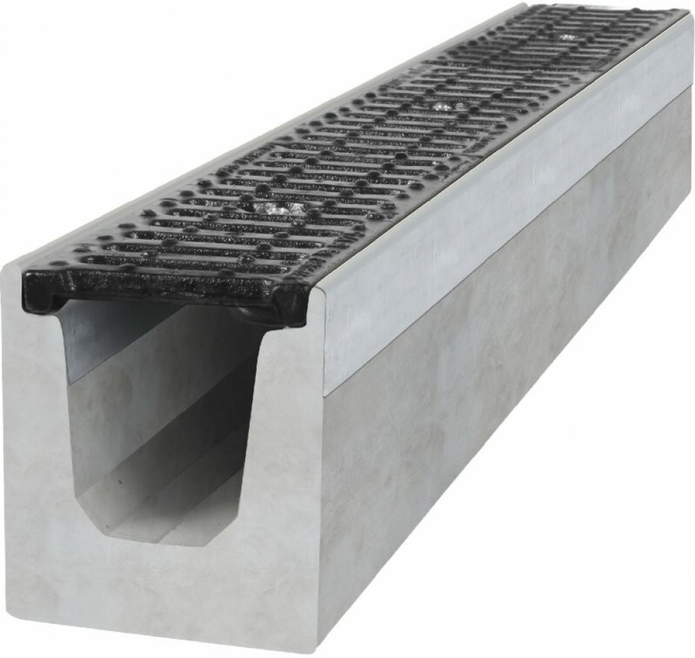 Odvodňovací betonový žlab BIELBET B125 s litinovou mříží 1000 x 145 x 160 mm