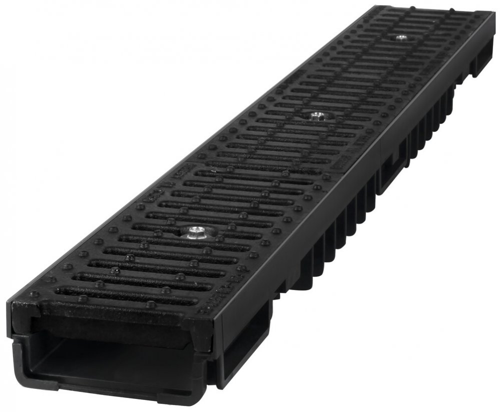 Odvodňovací plastový žlab BIELBET B125 s litinovou mříží 1000 x 130 x 55 mm