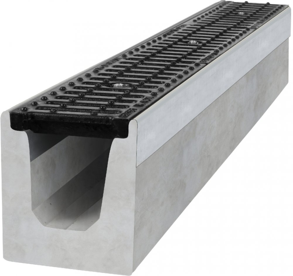 Odvodňovací betonový žlab BIELBET C250 s litinovou mříží 1000 x 145 x 160 mm