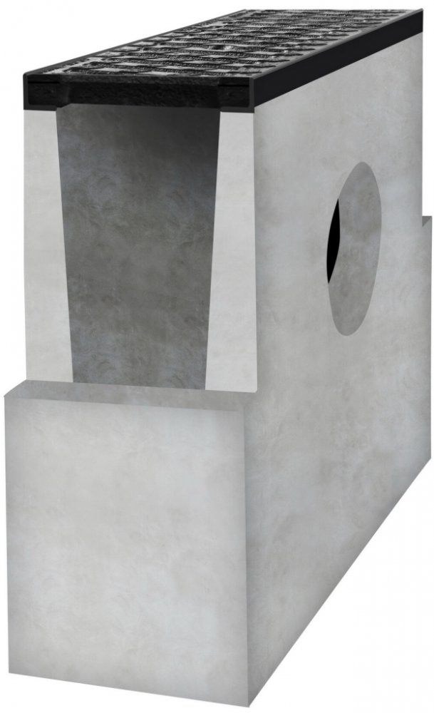 Tento typ sběrné vpusti nabízí jeden boční odtok s vnějším průměrem 160 mm a slouží jako doplněk pro napojení odvodňovacích betonových žlabů BIELBET D400 o rozměru 250 x 300 mm s kanalizačním potrubím.