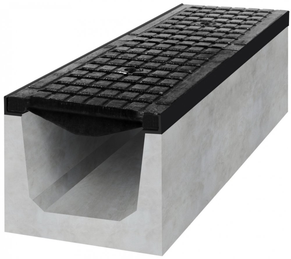 Odvodňovací betonový žlab BIELBET E600 s litinovou mříží 1000 x 250 x 200 mm