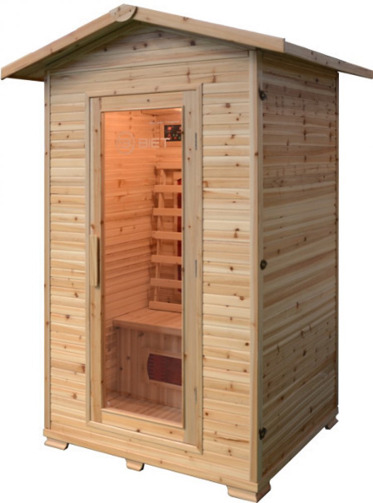 Tato dvoumístná sauna je vhodná do exteriéru*. V infrasauně je umístěno 6 keramických zářičů, které mají velmi rychlou výhřevnost. Je vyrobena ze speciálního jedlového dřeva. Základní parametry (teplota, čas) si snadno nastavíte na vnitřním ovládacím panelu s LED dispejem. Sauna je oblíbená pro nízkou cenu a úsporný provoz. Technické parametry: - sauna pro 2 osoby - dřevo: jedle (interiér i exteriér) - 6 ks keramických zářičů - vlnová délka záření je 5,6-15 mikrometrů - vnitřní ovládací panel s LED displejem - CD / AM / FM stereo s USB vstupem a dálkovým ovládáním - digitální snímač teploty - světlo pro čtení - ionizátor kyslíku - 6 mm čiré tvrzené sklo - dřevěná rukojeť na dveřích - střešní ventilace - provozní teplota: 30-60 ° C - příkon: 1900 W - tloušťka bočních panelů: 30 mm - tloušťka předního a zadního panelu: 50 mm - rozměry: 1200 x 1050 x 2100 mm - hmotnost sauny: 132 kg - zabalená sauna se skládá z 2 ks kartonů - certifikáty: FSC, CE, EMC, RoHS - pro domácí použití - záruka 36 měsíců - jednoduchá montáž, manuál je součástí balení Vlastnosti: - automatický digitální řídicí systém potřebný pro provoz sauny - automatický termostat pro udržení stálé teploty - už žádné dusno, přívod čerstvého vzduchu díky střešnímu větracímu otvoru - jednoduchá instalace - přenosná - zcela volně stojící - připojuje se do domácí sítě - krásný a luxusní vzhled - nastavitelný čas a teplota pomocí digitálního ovládacího panelu sauny - bezpečnostní skleněné dveře - multifunkční přehrávač Výhody: - úspora elektrické energie - komfortnější saunování při nižší teplotě - spaluje kalorie, při 30 minutovém saunování dokáže spálit až 600 kalorií - zvyšuje krevní oběh a posiluje kardiovaskulární systém - ulevuje od bolesti - zmírňuje bolesti kloubů a ztuhlost svalů - odstraňuje celulitidu - detoxikace organismu - čistí a obnovuje pleť - posiluje imunitní systém - odbourává stres * Infrasauna je určena pro venkovní použití, ale vyžaduje, altán, nebo přístřešek, případně alespoň fóliové pokrytí proti dešti a vlhkosti, pokud se sauna nepoužívá, jelikož samotný materiál infrasauny (dřevo, kov) nejsou vodovzdorné.