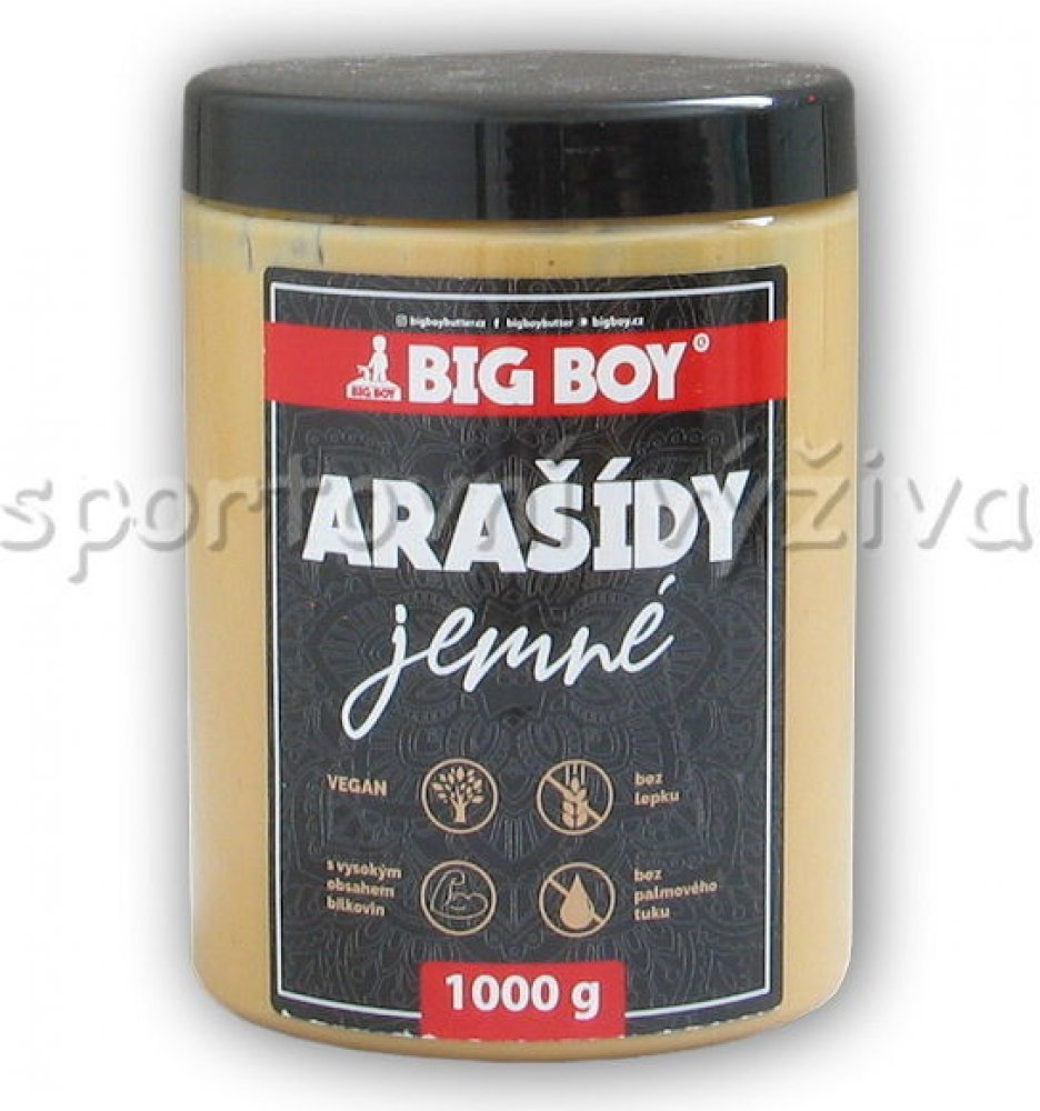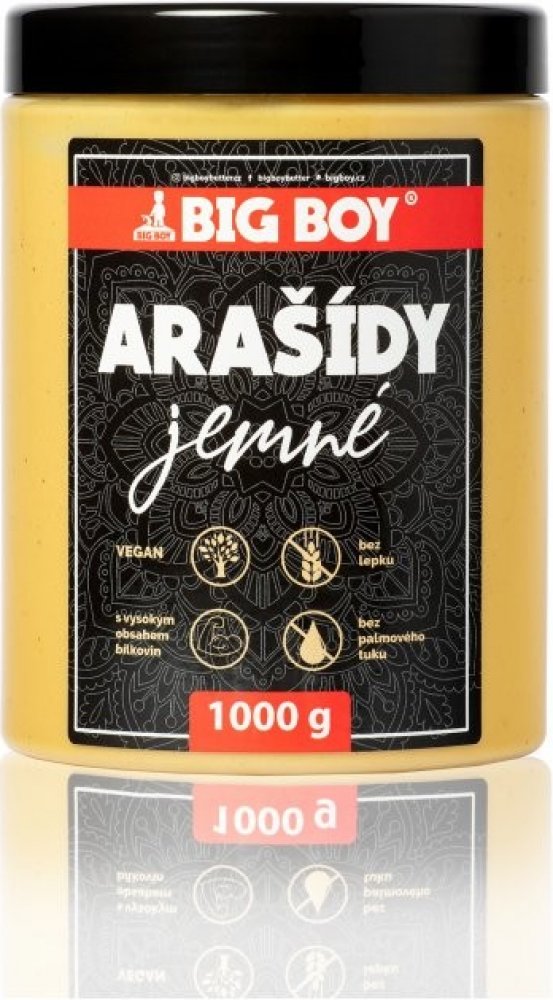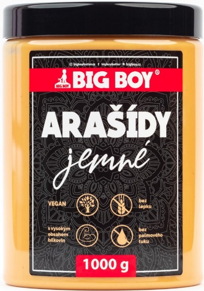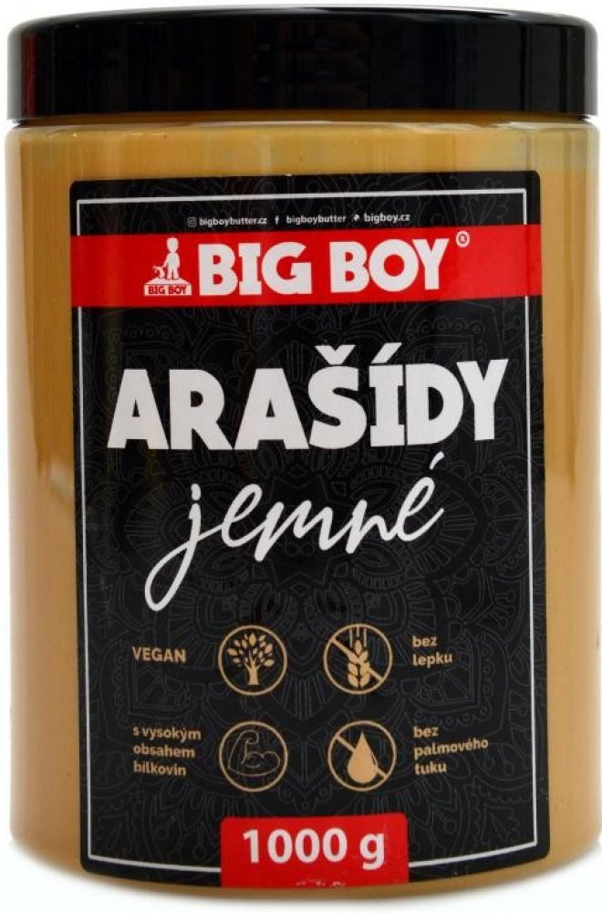 BIG BOY Arašídové máslo Jemné je čisté arašídové máslo s vysokým obsahem bílkovin a zdravých tuků, který by ve vašem jídelníčku rozhodně neměl chybět. Oceníte ho v jakoukoliv denní dobu, má totiž široké využití.