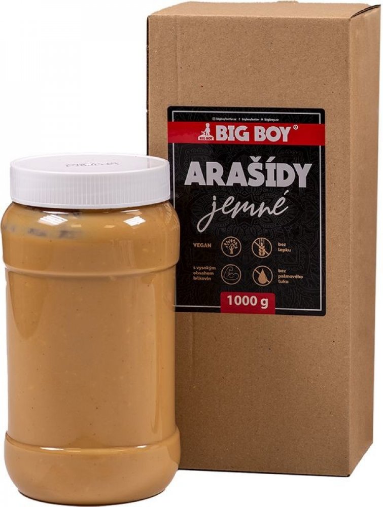 BIG BOY Arašídové máslo Jemné je arašídové máslo krémové konzistence, které vám učaruje hned po první lžičce. Neobsahuje žádné přidané konzervanty, barviva, cukr ani sůl. Za to v něm najdete kousky rozdrcených arašídů, díky kterým každé sousto neodolatelně křupe. Zapomeňte na přeslazené sladké pomazánky s palmovým tukem. BIG BOY Arašídové máslo Jemné je zdravá alternativa pro každého, kdo rád mlsá...