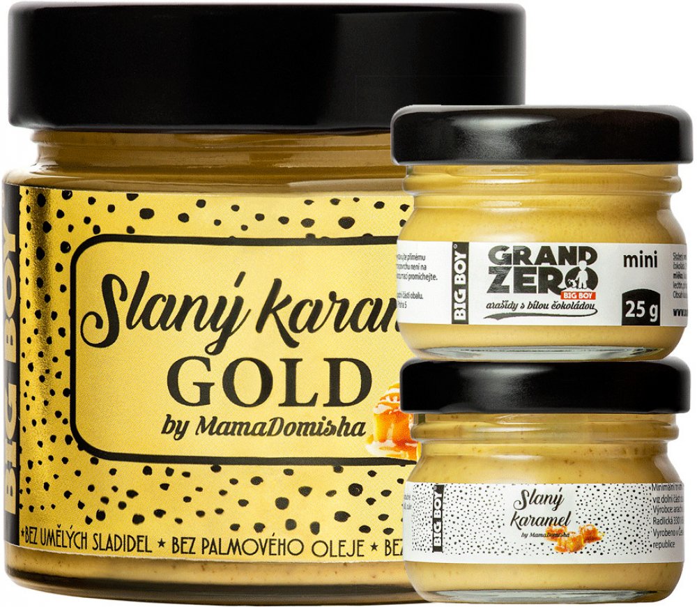 BIG BOY Slaný karamel Gold je vyvážený ve všech ohledech, přesto má skvělou chuť, a navíc je bez palmového oleje a lepku. Chutná výborně s pečivem, do müsli, kaší či jako dochucovadlo dezertů. Ale pozor – výborný je i jen tak ze skleničky.