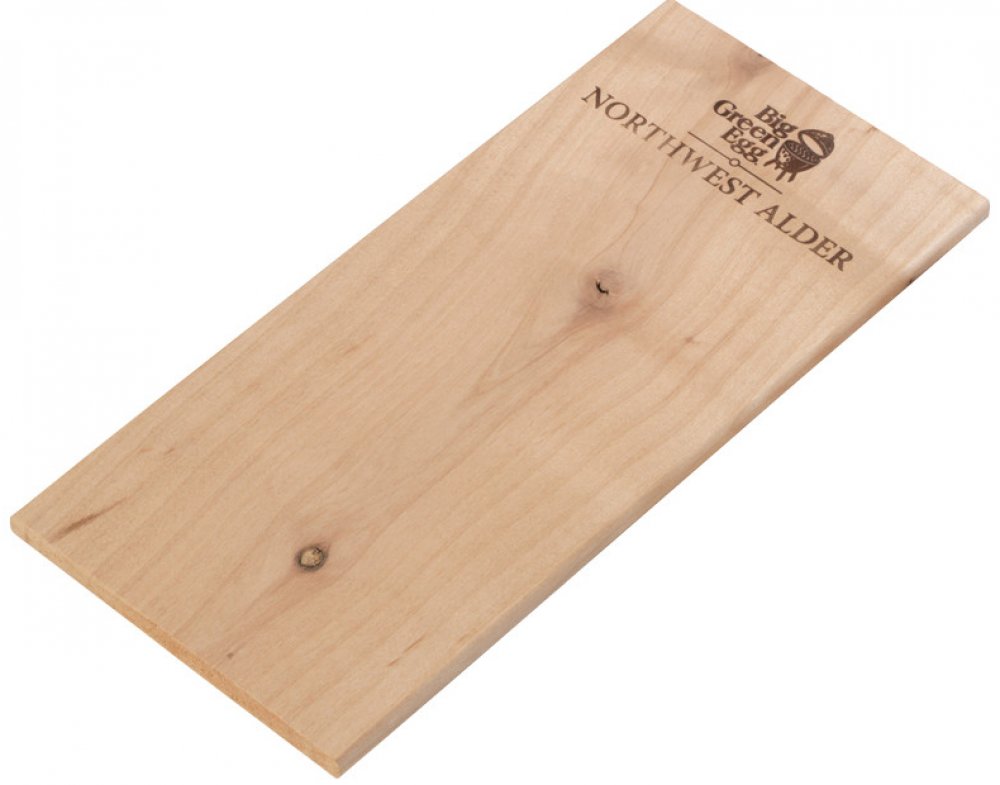 Položte si suroviny na (namočené) prkénko na rošt Big Green Egg a vlhkost zajistí efekt dýmu. Na výběr máte prkénka z cedrového nebo olšového dřeva, každé s jedinečným chuťovým akcentem.