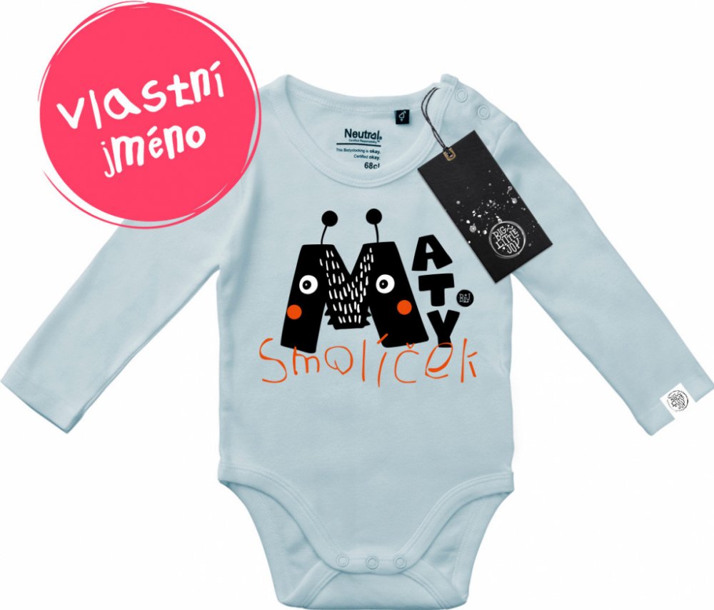 Ručně vám nakreslíme jméno a přezdívku vašeho miminka v originálním Monster stylu. Po odsouhlasení obrázek vytiskneme na velmi příjemné body za 100% bio bavlny.