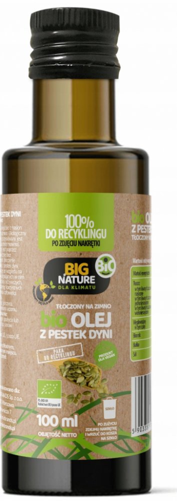 Ekologický dýňový olej se získává z dýňových semínek (Cucurbita maxima). Olej se získává mechanickým lisováním bez použití tepla (lisování za studena). Bio Dýňový olej si zaslouží pozornost díky rozmanitosti obsažených složek a nutričních hodnot, které vykazují řadu příznivých účinků na lidské zdraví.
