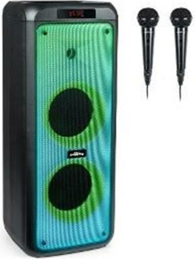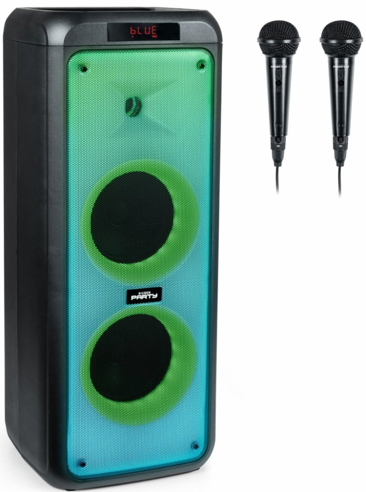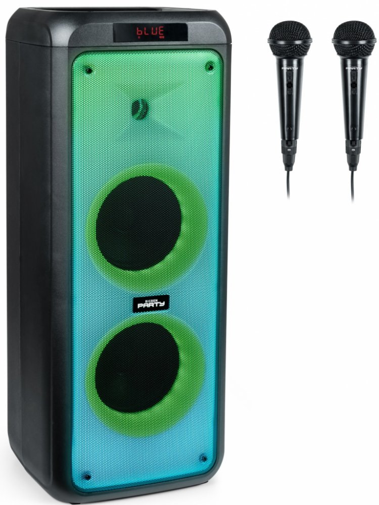 Bezdrátový párty Bluetooth reproduktor se světelnými efekty a výkonem 600 wattů. Dynamické světelné efekty ve spojení s přiloženými mikrofony zaručí velkolepou párty s rodinou nebo přáteli.