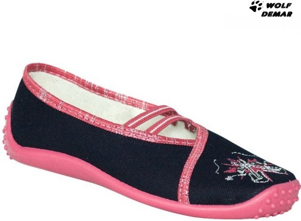 Dětská dívčí textilní obuv Bighorn LAURA v tmavě modré barvě s výšivkou a gumičkami. Materiál je vysoce kvalitní bavlna. Lehká pružná podešev vyrobená z PVC. Stélka je vyrobena z přírodní kůže a pružné pěny ...