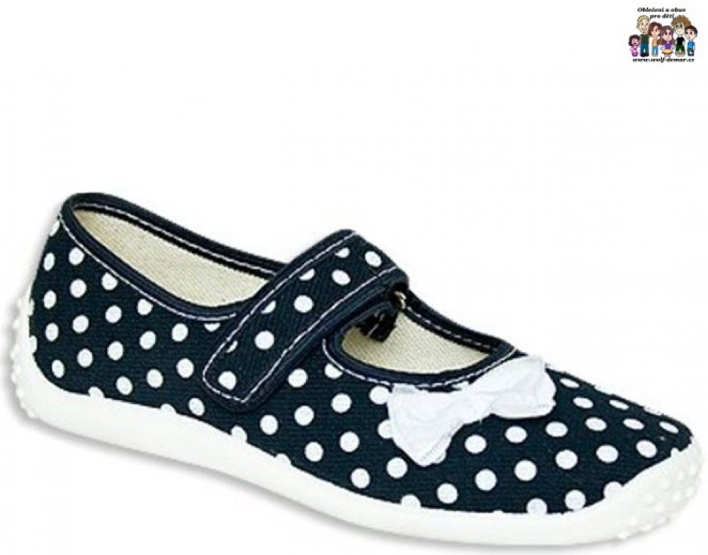 Dětská textilní obuv bighorn JANA se zapínáním na suchý zip v tmavě modré barvě s mašličkou. Materiál je vysoce kvalitní bavlna. Lehká pružná podešev vyrobená z PVC. Stélka je vyrobena z přírodní kůže a pružné pěny s aktivním uhlím. Kůže absorbuje přebytečnou vlhkost a aktivní uhlí nepříjemné pachy, což chodidlu dává pocit svěžesti. Pata obuvi je vyztužena. Bota je velice pohodlná a lehká. Vyroben...