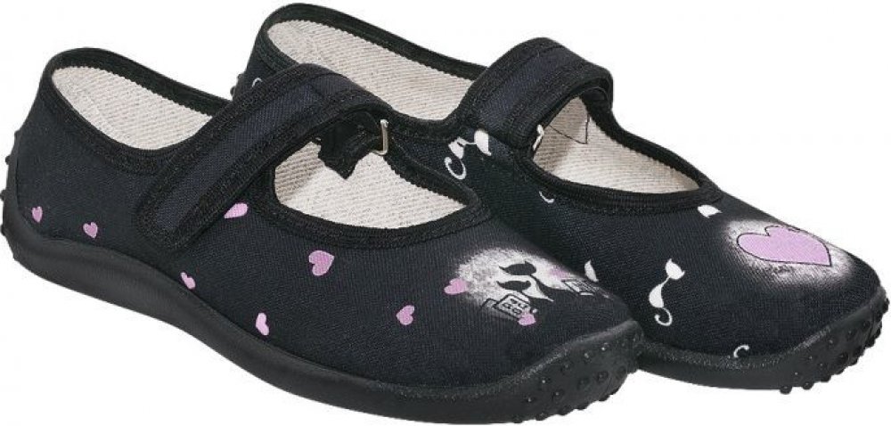 Dětská textilní obuv bighorn JANA se zapínáním na suchý zip a plnou špicí. Materiál je vysoce kvalitní potištěná bavlna v černé barvě s motivem srdce a koček. Lehká pružná podešev vyrobená z PVC. Stélka je vyrobena z přírodní kůže a pružné pěny s aktivním uhlím. Kůže absorbuje přebytečnou vlhkost a aktivní uhlí nepříjemné pachy, což chodidlu dává pocit svěžesti. Pata obuvi je vyztužena. Bota je ve...