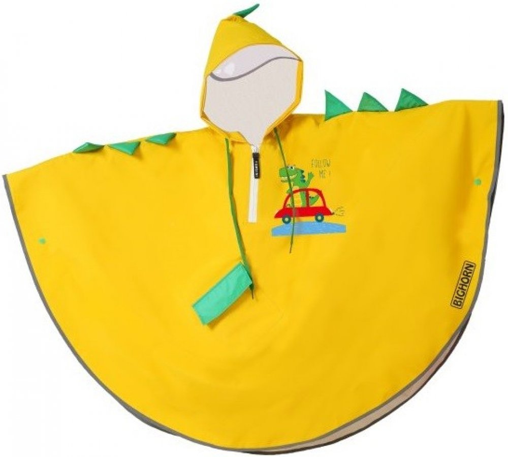 Dětská pláštěnka typu pončo Bighorn TAJFUN je ideální volbou do deštivého počasí. Barva pláštěnky je žlutá s obrázkem krokodýla. Pončo je vyrobeno z kvalitního měkkého polyamidového materiálu s příjemnou podšívkou. Pláštěnka má kapuci se stahovací šňůrkou a průhledný kšilt proti dešti. Pro ty co kšiltík nechtějí je možné ho otočit do vnitřku kapuce a užívat bez něj. Pončo se navléká přes hlavu se zipem u krku. Díky své volnosti neomezuje v pohybu a krásně schová dítě i s jeho batohem. Na přední straně je umístěna kapsička a po obvodu je umístěn reflexní prvek. Pláštěnka je pevná, lehká, skladná a snadno se sbalí do malého vaku, který je součástí balení. Díky svému provedení a použitému materiálu může být pončo využíváno pro každodenní nošení jako běžná bunda.