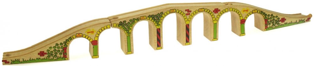Dlouhý a vysoký dřevěný most pro vláčky, pod kterým konečně projedou všechny mašinky a vagónky bez problémů i s velkými náklady.