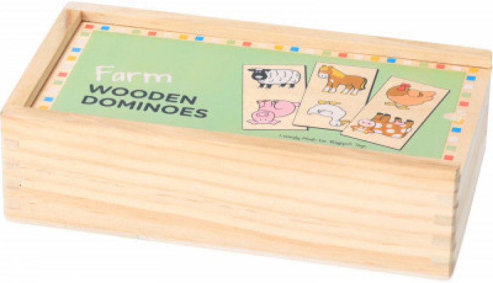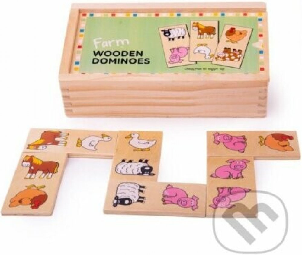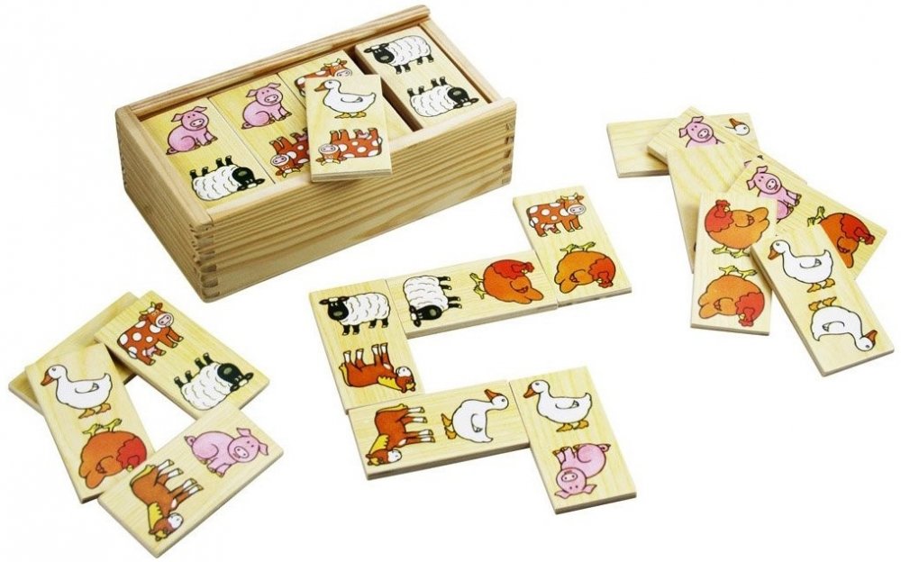 Domino má veselý a jednoduchý motiv zvířátek z farmy. Děti se budou těšit, když budou spojovat obrazy kravičky, prasátka, slepice a dalších zvířátek. Dílky jsou dostatečně velké, aby se dobře držely, a jsou vyrobeny z vysoce kvalitních materiálů.
