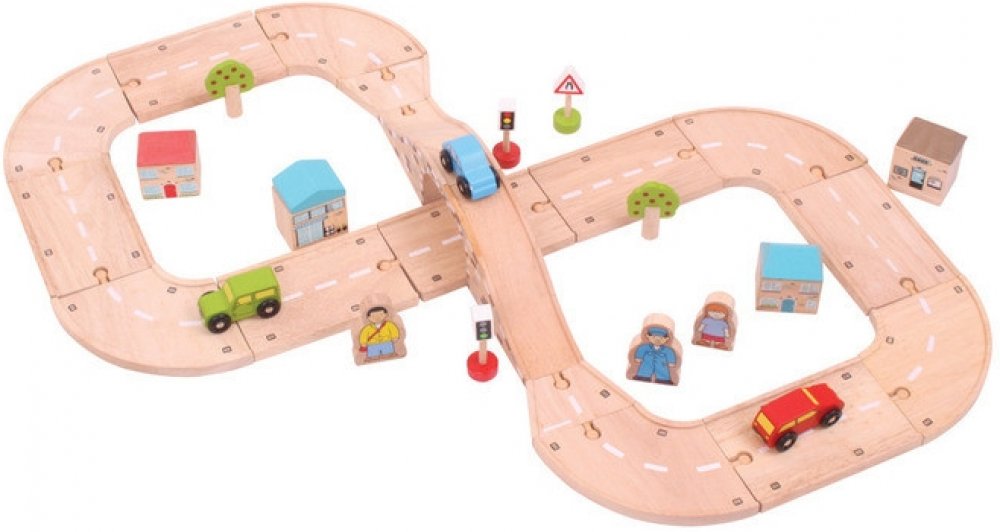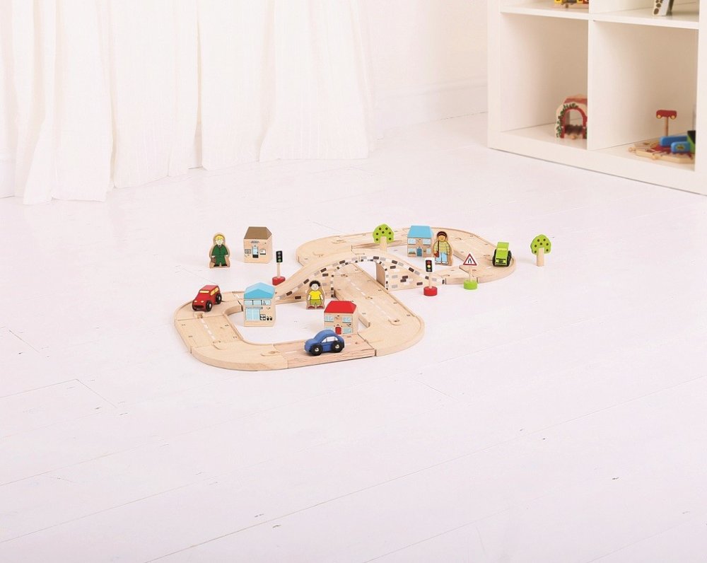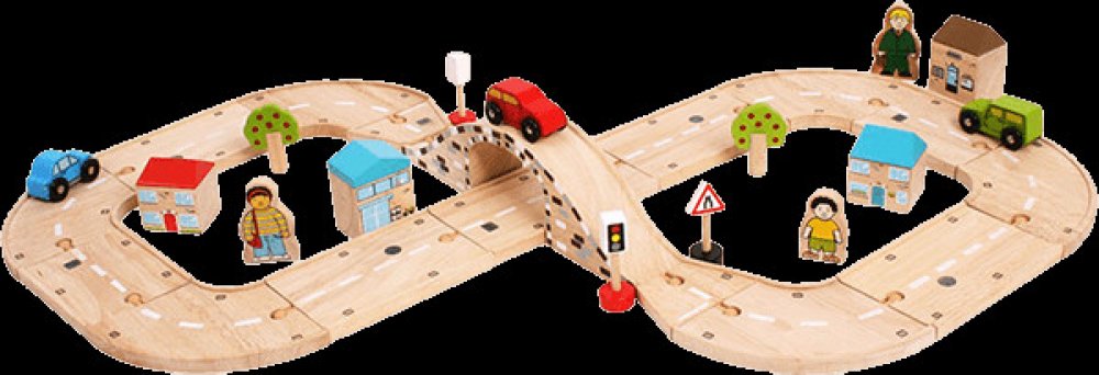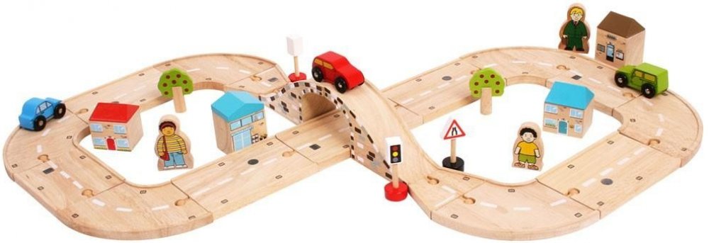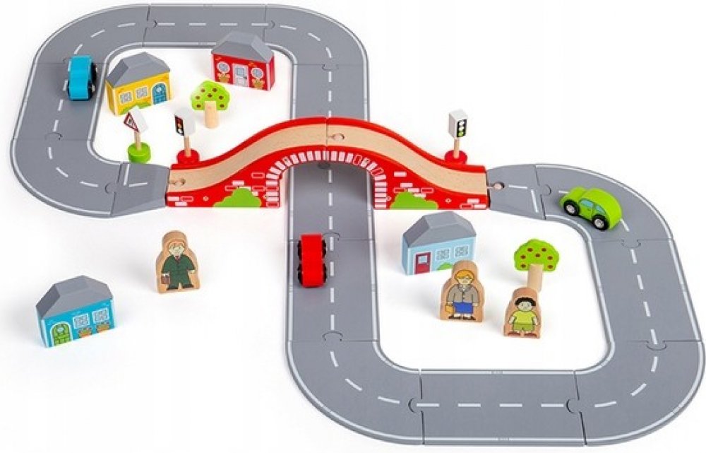 Obsahuje řadu dřevěných silníčních dílů a příslušenství, což umožňuje dostatek prostoru pro delší hru.