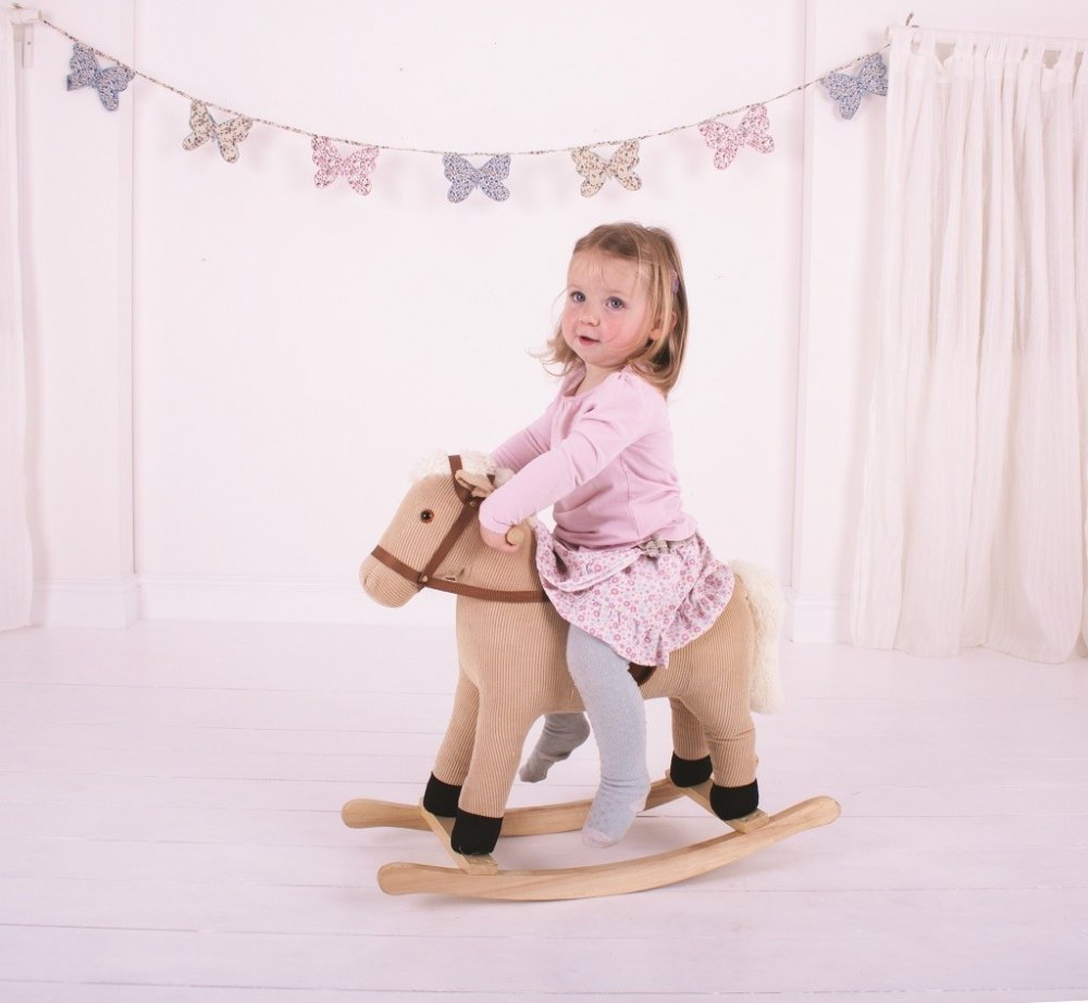 Vyražte na projížďku! Tento nádherný, pečlivě vyrobený dřevěný houpací kůň má hnědý manžestrový potah s měkkým sedlem a uzdečkou. Pevná a snadno uchopitelná madla usnadňují držení. Vyrobeno z vysoce kvalitních materiálů. Všechny Bigjigs Toys hračky odpovídají současným evropským bezpečnostním normám. Tento kůň vyžaduje počáteční montáž. Hlavní vlastnosti: pevná a stabilní dřevěná konstrukcepotaženo jemným manžestremmadla velikostně ideální pro dětské ručičkyvýška sedu 40 cmpodporuje pohybovou aktivitu, rovnováhu a koordinaci