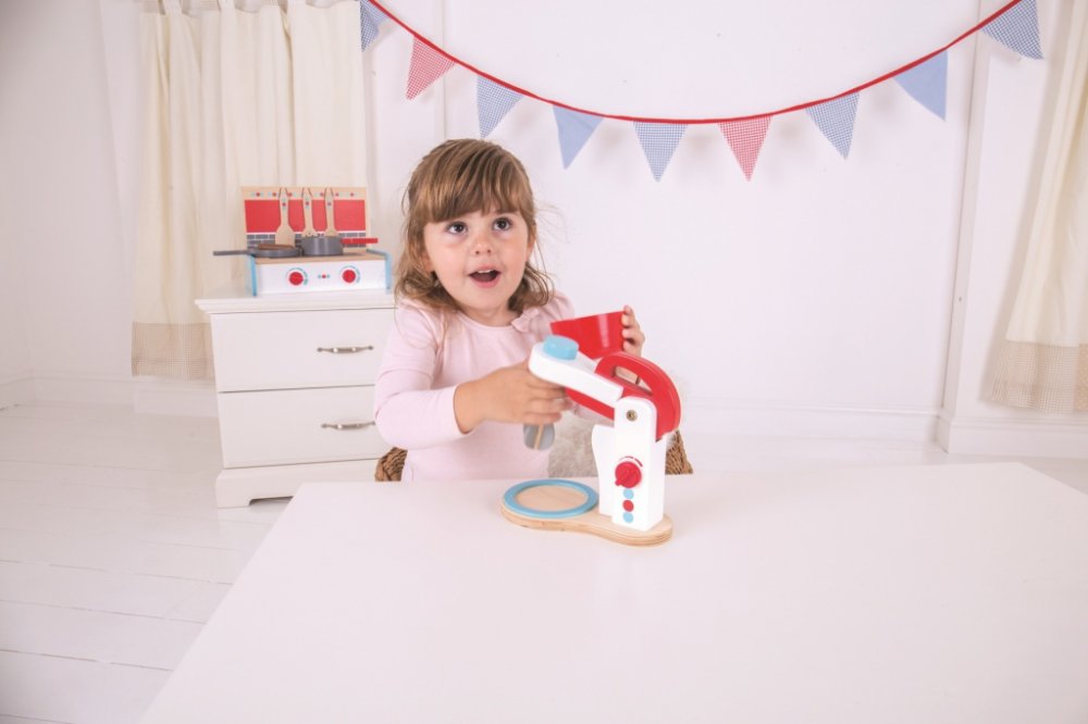 Zábavná hra s tímto realistickým mixérem potravin, který má celou řadu interaktivních funkcí! K dispozici je on / off přepínač, který se skutečně otáčí a miska čeká na ingredience! Přepínač vydává realný zvuk. Díky své kvalitní dřevěné konstrukci je tato souprava nezbytným herním kuchyňským příslušenstvím, jistě vám poskytne léta předstírané herní zábavy. Skvělý způsob, jak rozvíjet tvořivost, pře...
