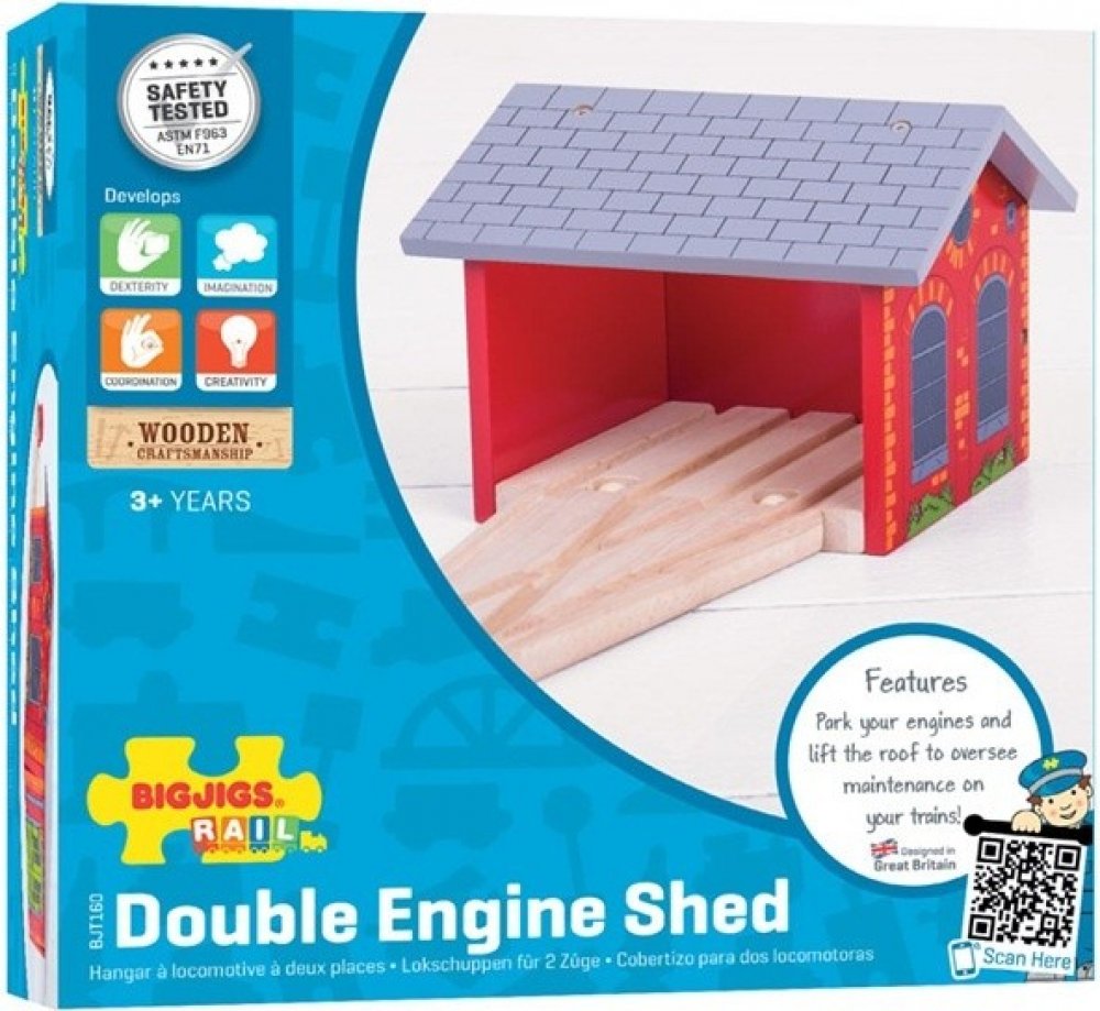 Kompaktní a dobře navržené depo má schopnost uložit až 2 vlaky. Skvělý doplněk dřevěné vláčkodráhy pokud máte v daném okamžiku přebytek vašich vláčků nebo pokud je jen potřebujete nechat odpočinout nebo natankovat.Součástí balení