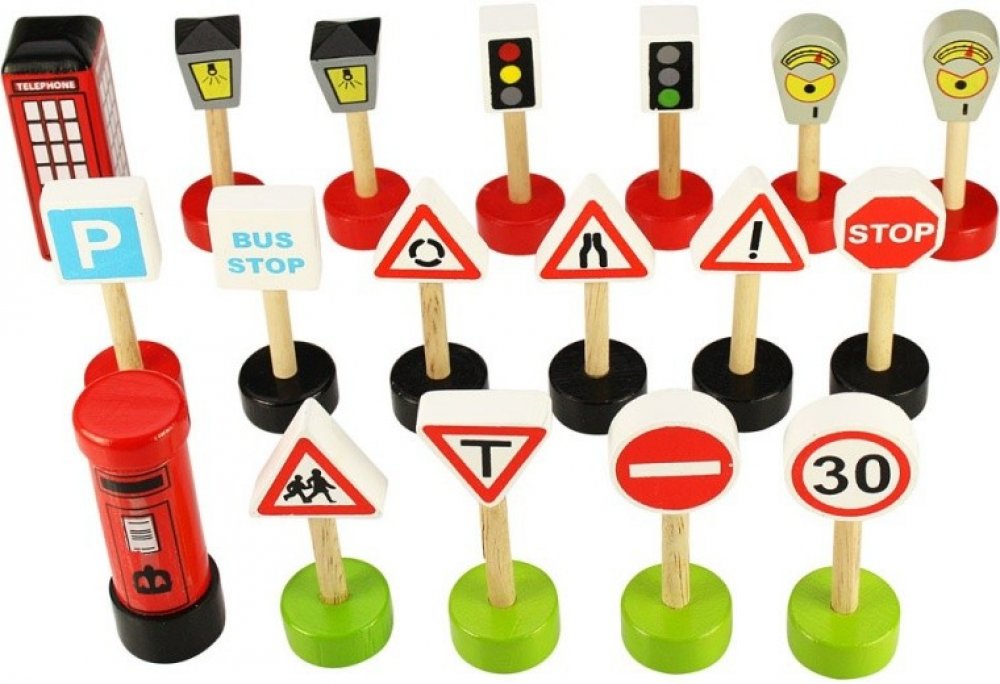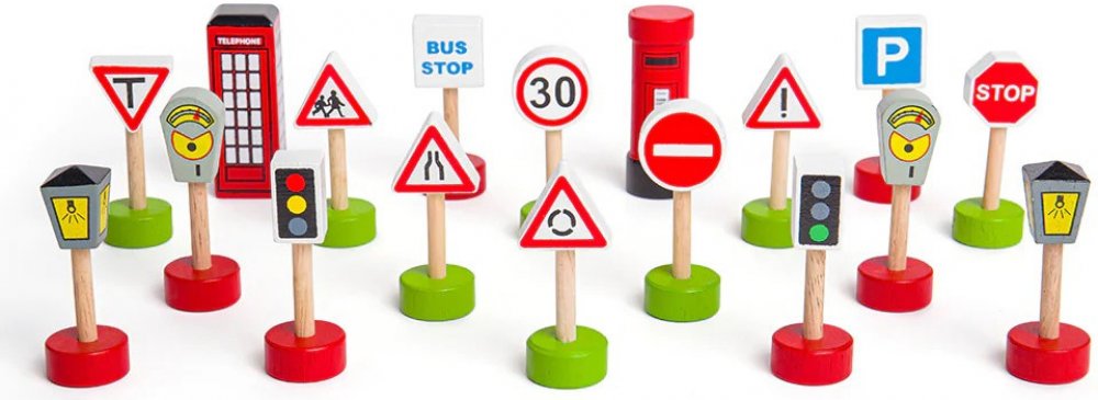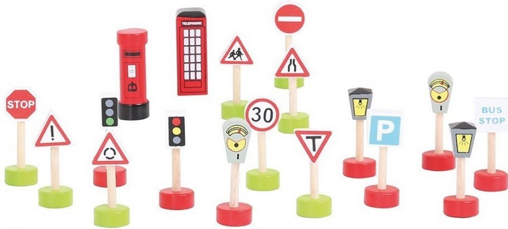 Bigjigs Rail Dřevěné autodráhy sada dopravních značek Součástí balení je vše dle obrázku. Bigjigs Rail autodráhy a jejich příslušenství je možno kombinovat s vláčkodráhami Bigjigs Rail. Hlavní vlastnosti: