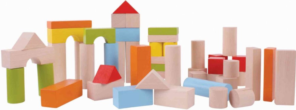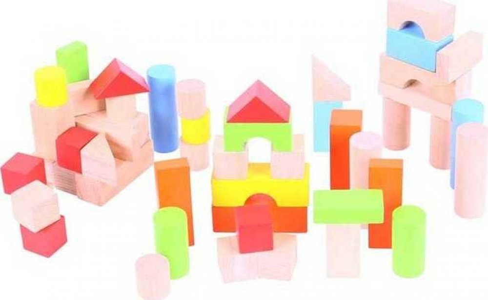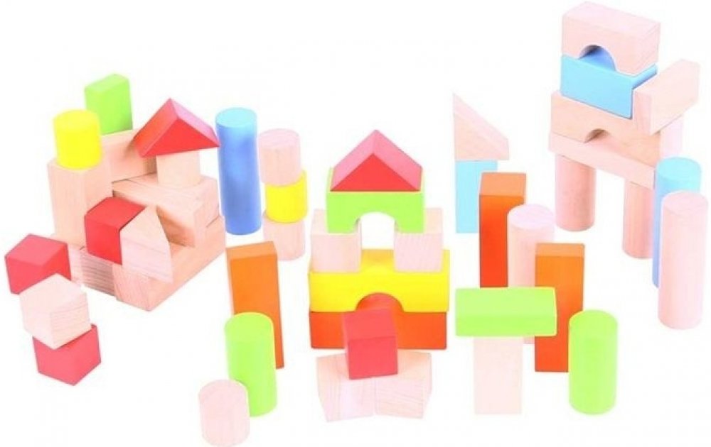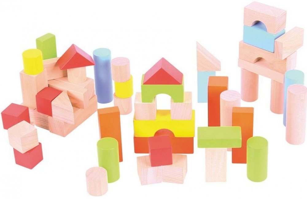 Bigjigs Toys barevné kostky v kyblíku 50 ks