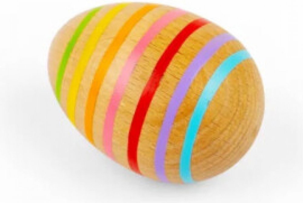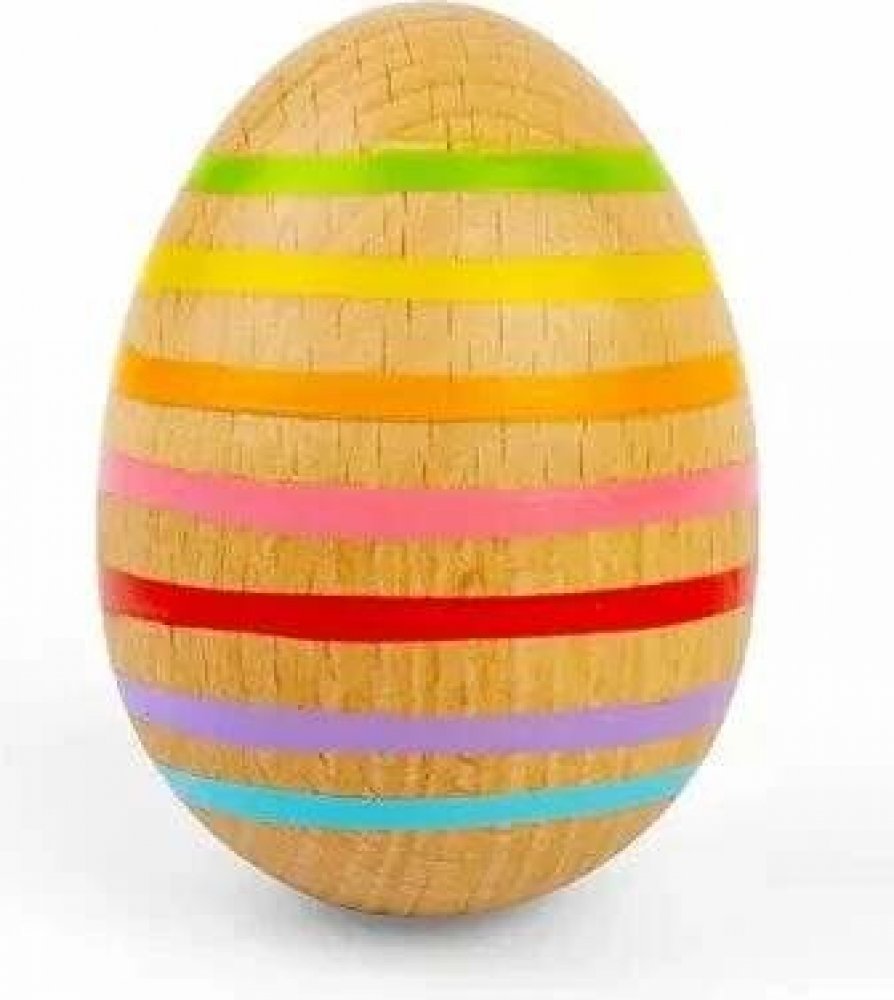 Třeste, chrastěte a válejte! Vytvořte tak báječné zvuky a něco příjemného pro vaše uši! Vajíčko v duhovém pruhovaném designu má krásný tvar akorát pro dětskou ručičku, která jej tak snadno uchopí. Díky kombinaci přírodního dřeva a moderních kontrastních barev je tato hudební hračka také vizuálním poutačem. Absolutní hit pro milovníky zvuku! Hudební chrastící vajíčko trénuje akustické vnímání i smy...