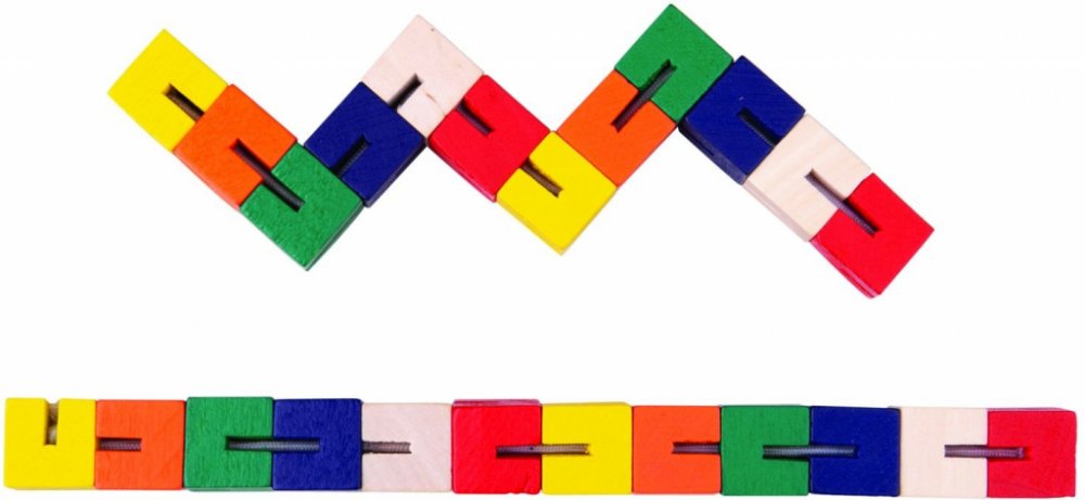 Had, pes, mořský koník... tvary, které můžete tvořit s těmito barevnými kostkami, nemají konce! Točte je sem a tam, převracejte je – všechny manipulační pohyby pomáhají rozvíjet jemnou motoriku a zručnost. Vyrobeno z vysoce kvalitních, zodpovědně získaných materiálů. Splňuje aktuální evropské bezpečnostní normy.