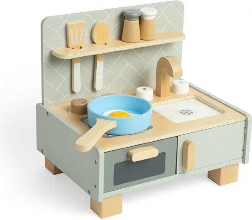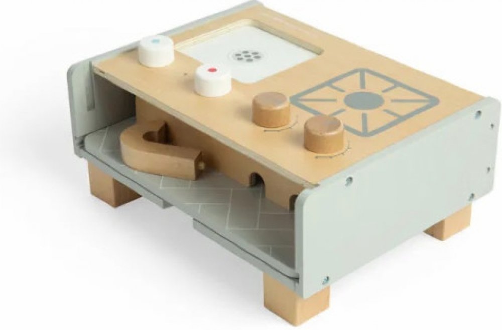 Příslušenství se dá snadno uklidit do vnitřního prostoru kuchyňky. Přenosná kuchyňka v jemných neutrálních barvách se bude vyjímat v každém dětském pokojíčku nebo herně. Díky kompaktní velikosti je ideální do menších prostor.