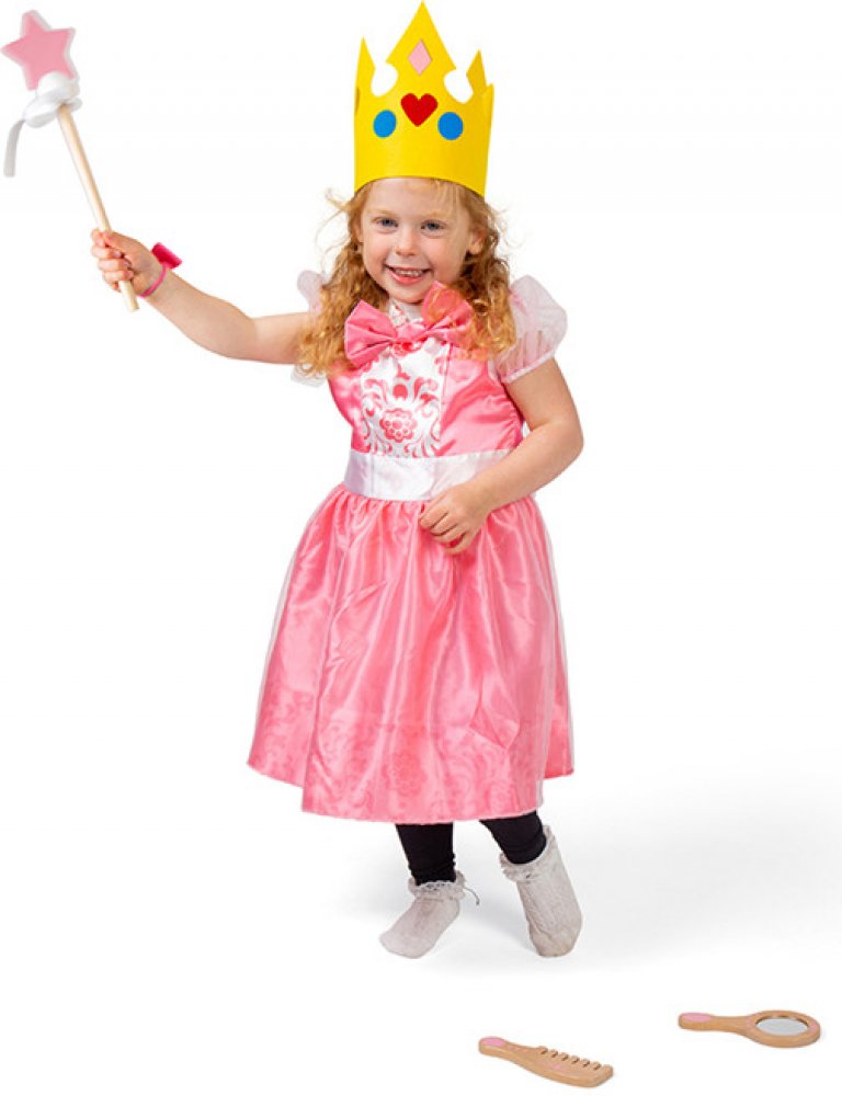 Perfektní kostým růžové šaty se síťovanými rukávy pro malé princezny. Možnosti předstírané hry jsou nekonečné. Testováno podle nejnovějších předpisů EN71 a REACH. Hlavní vlastnosti: příslušenství: korunka, zrcátko, hřeben, rukavice, kouzelná hůlka vhodné pro děti od 3 do 4 let nápadité a detailní zpracování rozměry: délka 104 cm, hrudník 56 cm, pas 54 cm, boky 58 materiál: látka, dřevo Anglická značka Bigjigs Toys byla založena roku 1985 a zpočátku se zabývala pouze výrobou dřevěných puzzle. Majitelé vyráběli vše ručně, s láskou, v malém zahradním domku a své výrobky prodávali na trhu. Spokojení zákazníci výrobce motivovali k mnoha dalším nápadům a rozšíření nabídky o další dřevěné hračky. Přibylo zasílání poštou a prodej přes katalog. Spokojenost a věhlas značky rostly, takže následoval velkoobchodní prodej a pro udržení výrobních cen přesun a rozšíření výroby na východ. Nové značky kvalitních a nápaditých hraček si v Anglii všimly další velké prodejní firmy. Dnes Bigjigs Toys hračky zůstávají ve vlastnictví rodiny s obrovskými sklady v jihovýchodní Anglii. Společnost i nadále dodává své hračky široké zákaznické základně ve Velké Británii a západní Evropě podpořená loajálním, oddaným a tvrdě pracujícím týmem zaměstnanců. Veškeré dřevěné hračky Bigjigs Toys jsou navržené v Anglii a vyrobené jak tamtéž, tak i ve východní Evropě a jihovýchodní Asii. Kvalita hraček značky Bigjigs Toys je testována a odpovídá všem podmínkám pro prodej v EU a USA.