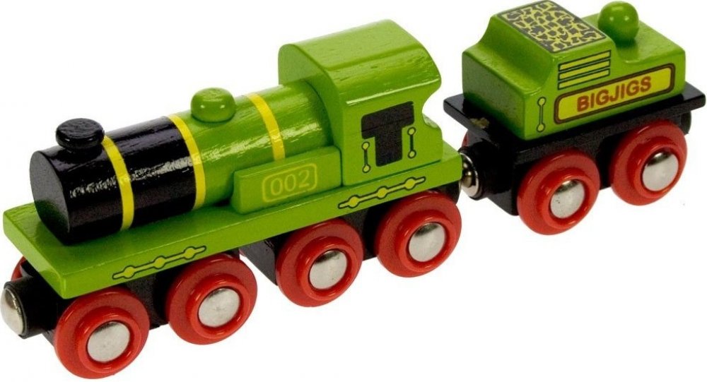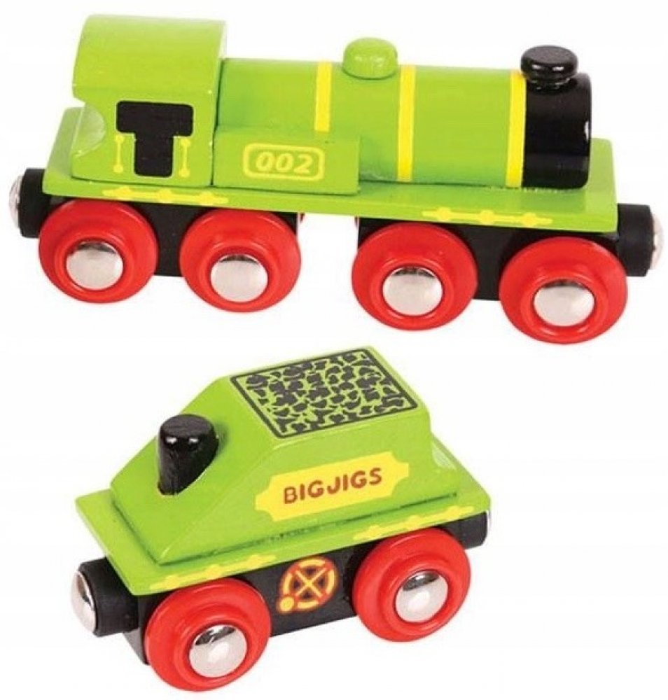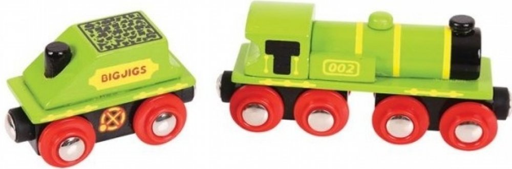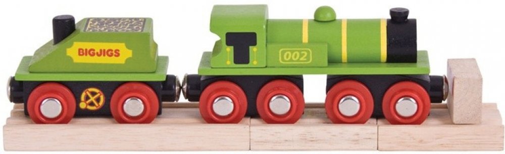 Bigjigs Rail Zelená lokomotiva s tendrem + 3 koleje Součásti balení jsou také koleje: 1ks krátká kolej BJT101, 1ks spojka BJT104 a 1ks koncová kolej BJT161!Hlavní vlastnosti: