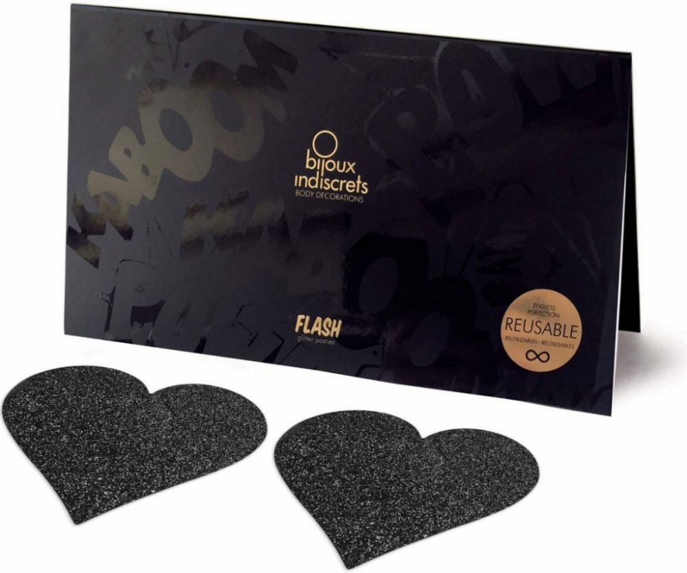 Bijoux Indiscrets Třpytivé samolepky na bradavky Bijoux Indiscrets Flash Heart, černé