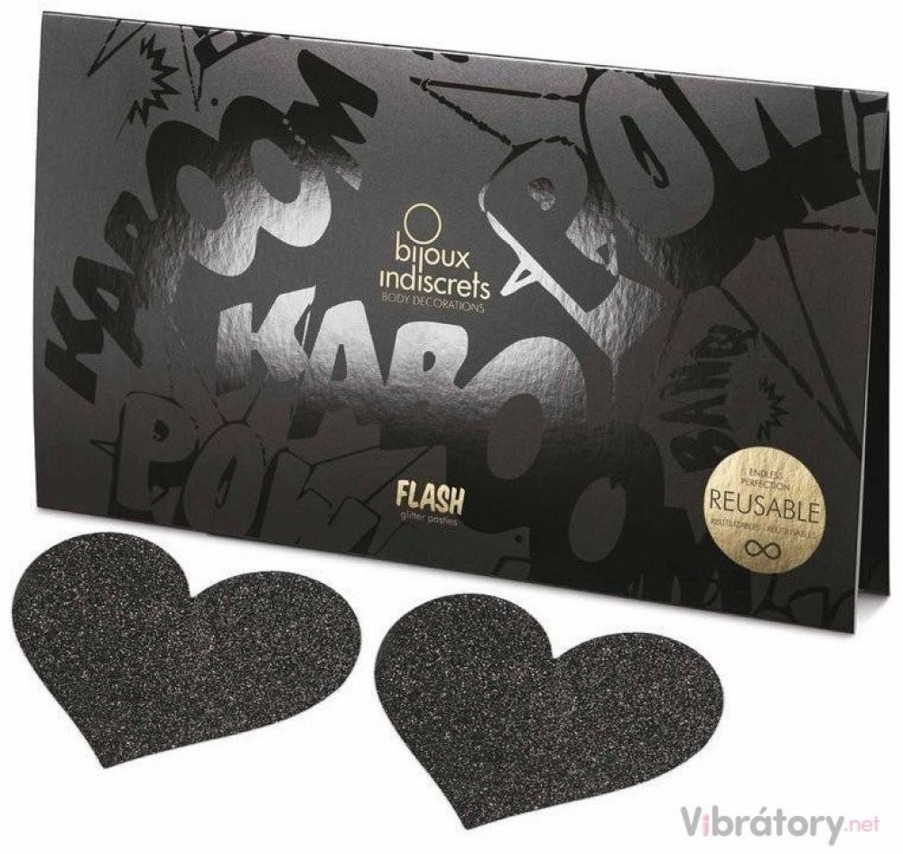 Nálepky na bradavky ve tvaru srdíček Flash je nová kolekce třpytivých body art od Bijoux Indiscrets, která se dodává ve dvou oslnivých odstínech, zlaté a stříbrné.