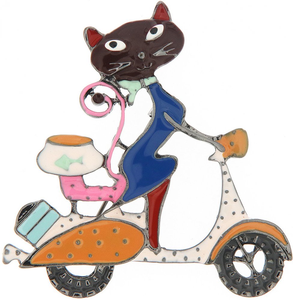 Brož - kočička na skútru, hnědé barvy.