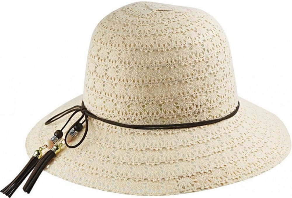Biju Dámský klobouk s ozdobným provázkem korálky a střapci 9001435-2 béžový