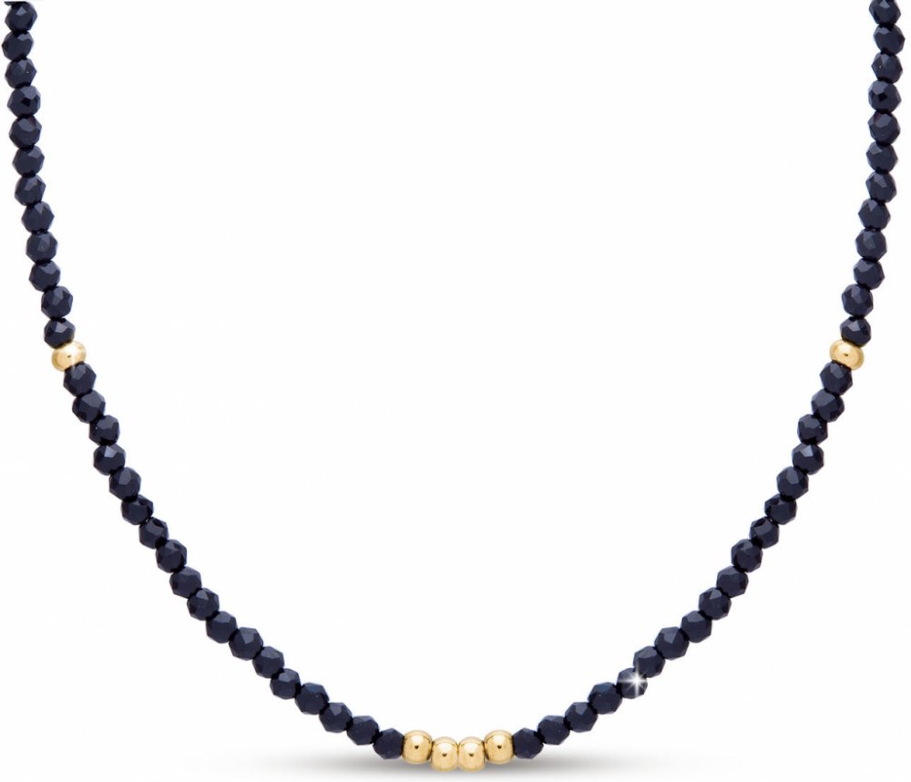 Pozlacený 14k řetízek z chirurgické oceli, s černými a zlatými korálky. Řetízek můžete nosit k jakémukoliv oděvu.