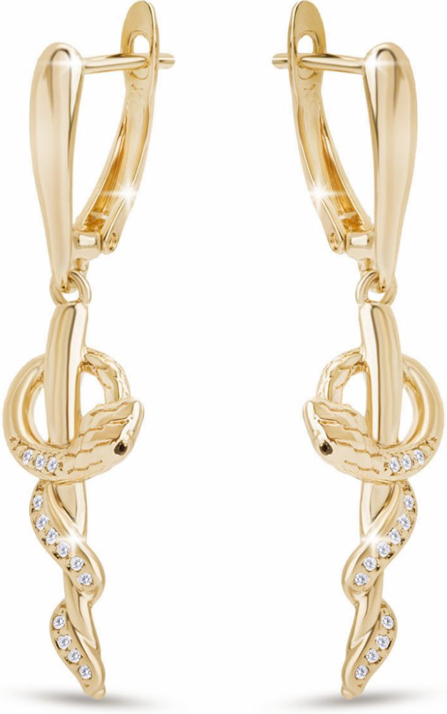 Chystáte se pořídit nové náušnice, které doplní zvolený outfit? Vsaďte na náušnice Biju. Náušnice Biju si zamilují všechny ženy. Jejich visací design se hodí ke kulatému, hranatému i oválnému obličeji. Jemně protáhnou obličej a budou pěkným doplňkem pro každodenní nošení i výjimečné události. O bezpečné nošení se postará francouzské zapínání nebo-li ruský patent. Jde o elegantní zapínání, kdy se pohyblivá část náušnice zasune do žlábku. Je charakteristické svou neviditelností a je oblíbené u plesových šperků. Materiálem těchto náušnic je rhodiovaný kov. Zásadní přednosti náušnic Biju Pozlacené náušnice 14K, had se zirkony 1003233 Náušnice Biju ve společnosti vyniknou Náušnice určené pro ženy Materiálem náušnic Biju je rhodiovaný kov Osazení: zirkony Visací náušnice se budou hodit i na slavnostní příležitosti Typ zapínání: ruský patent