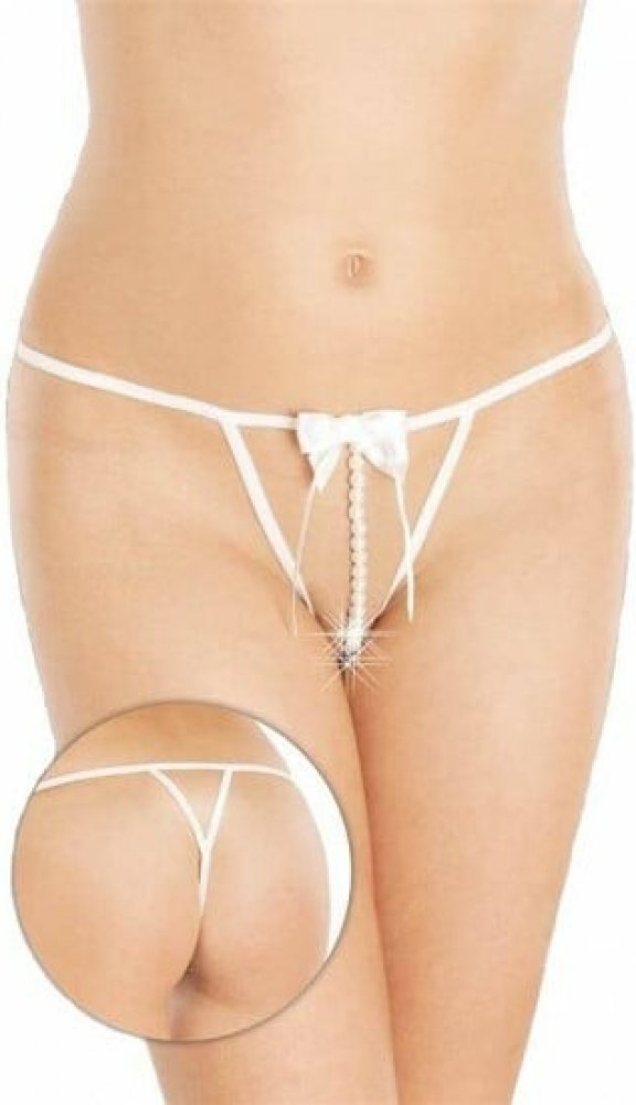 Bílá erotická tanga se stimulujícími perličkami v rozkroku.