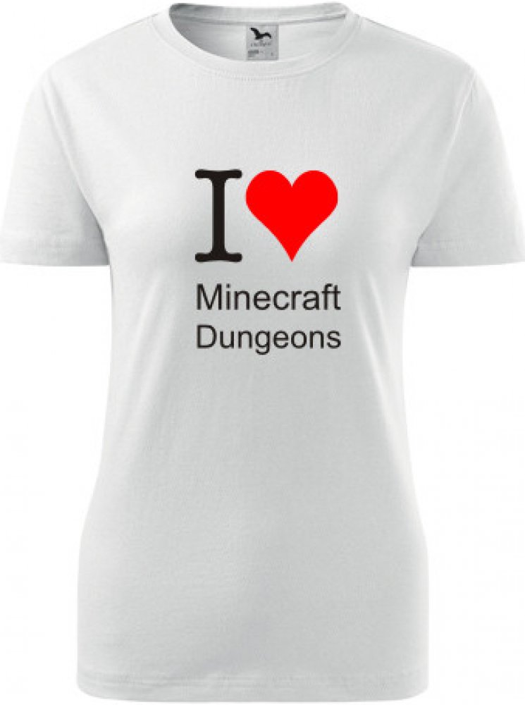 Bílé dámské tričko I love Minecraft Dungeon. nabízené velikosti jsou S,M,L,XL,XXL. Výběr z 12ti barev. Tričko patří do kategorií Dárek pro hráčky počítačových her, . Technologie potisku: Tisk na tričko je realizován pomocí termolisu a potisk je velice trvanlivý.