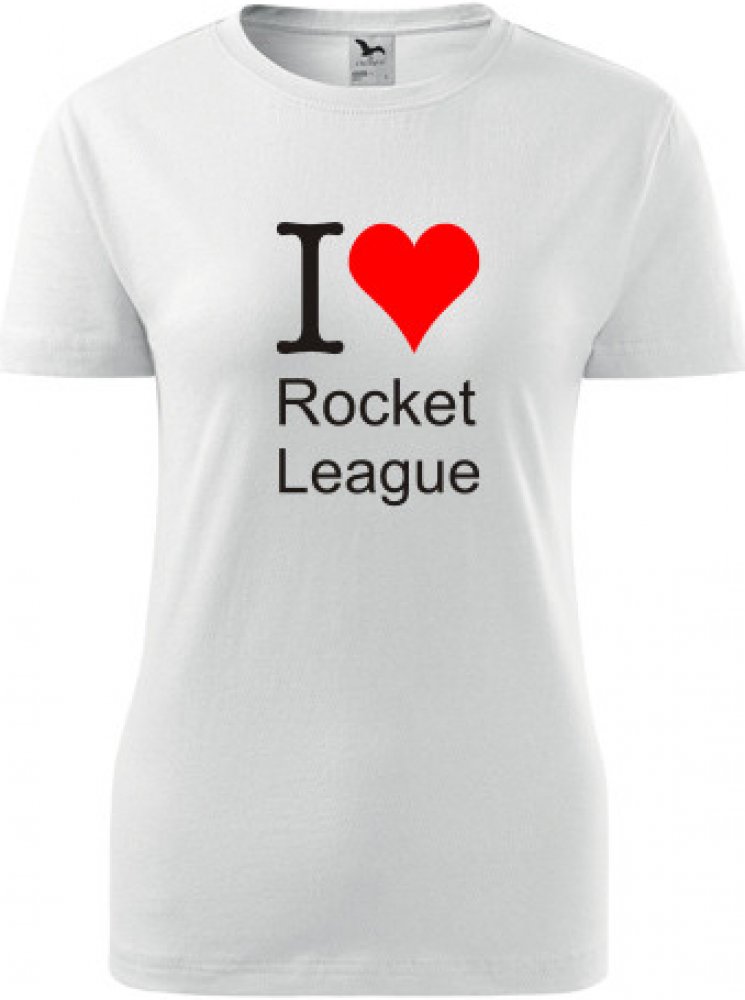 Bílé dámské tričko I love Rocket League. nabízené velikosti jsou S,M,L,XL,XXL. Výběr z 12ti barev. Tričko patří do kategorií Trička I love závodní hry - dámská, Dárek pro hráčky počítačových her, . Technologie potisku: Tisk na tričko je realizován pomocí termolisu a potisk je velice trvanlivý.