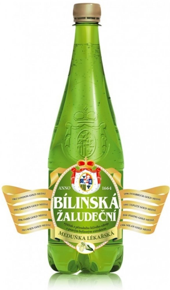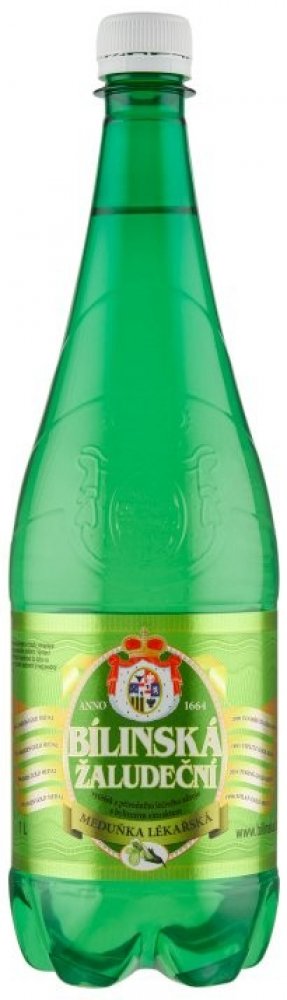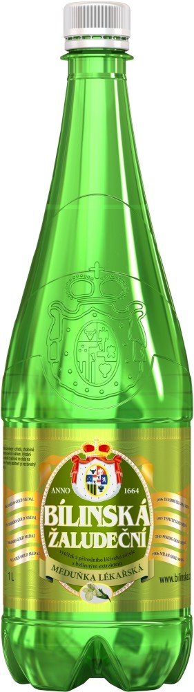 Bílinská žaludeční 1 l. Bílinská kyselka s přidaným extraktem z meduňky lékařské. Ta se používá v lidovém lékařství jako hypnotikum a sedativum, zpříjemňuje spánek a zajišťuje dobré zažívání, nově se zmiňují také protivirové účinky, zvláště u herpesvirů (opary). Výluh se získává z listů nebo natě rostlinky, kde hlavní složkou silice jsou citran, citronelan, hořčiny a třísloviny. Komplex látek obsažených v silici má pozitivní vliv zejména při stavech vyčerpanosti, zklidňuje pocity strachu a mírné úzkosti, příznivě působí při střevních a žaludečních neurózách a zabraňuje nadýmání. Bílinská je vynikající reprezentant kategorie alkalických, přirozeně perlivých lázeňských pramenů. Již více než tři staletí je Bílinská pitnou kúrou lázní Teplice v Čechách, nejstaršího evropského lázeňského města. Odtud se sláva Bílinské rozšířila do klasického evropském lázeňství, kde se užívá při obtížích se zažíváním, s překyselením žaludku, pálení žáhy, při kaméncích, při chorobách látkové výměny, dně a revmatismu. Složení: přírodní, velmi silně mineralizovaná minerální voda přirozeně sycená se zvýšeným obsahem fluoridů a lithia z přírodního léčivého zdroje obohacená o pravý přírodní extrakt z Meduňky lékařské. Obsahuje výluh z 500 mg suché byliny v 1 000 ml vody. Případný sediment je nezávadný přírodní jev. Analýza: Kationty mg/l: Li+ 4,43, Na+ 1 720, Ca2+ 139,0, K+ 82,0, Mg2+ 41,8. Anionty mg/l: HCO3 - 4 370, SO4 ² - 626, Cl- 225, F- 5,58. Celková mineralizace 7 276 mg/l.