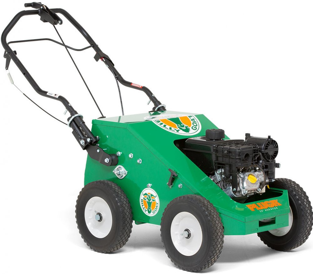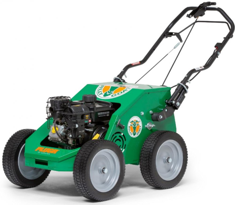 Velkou výhodou aerifikátoru Billy Goat Plugr 18 je jeho vyšší schopnost prorazit hrot do hloubky. Na čtyři aktivní hroty poháněné přes klikovou hřídel vychází hmotnost stroje 109 kg. Dosažitelná hloubka vpichu je dostatečných 7 cm.