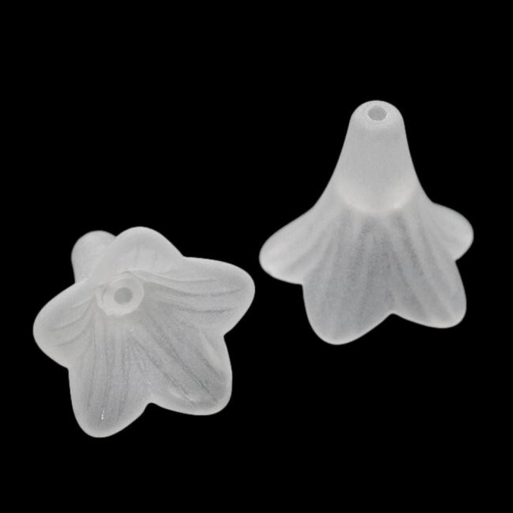 Barva: bílá Materiál: akryl (plast)✨ Povrch: matný Tvar: květ petunie Rozměr: 23 × 21 mm️ Velikost dírky: 2 mm Balení: 1 ks