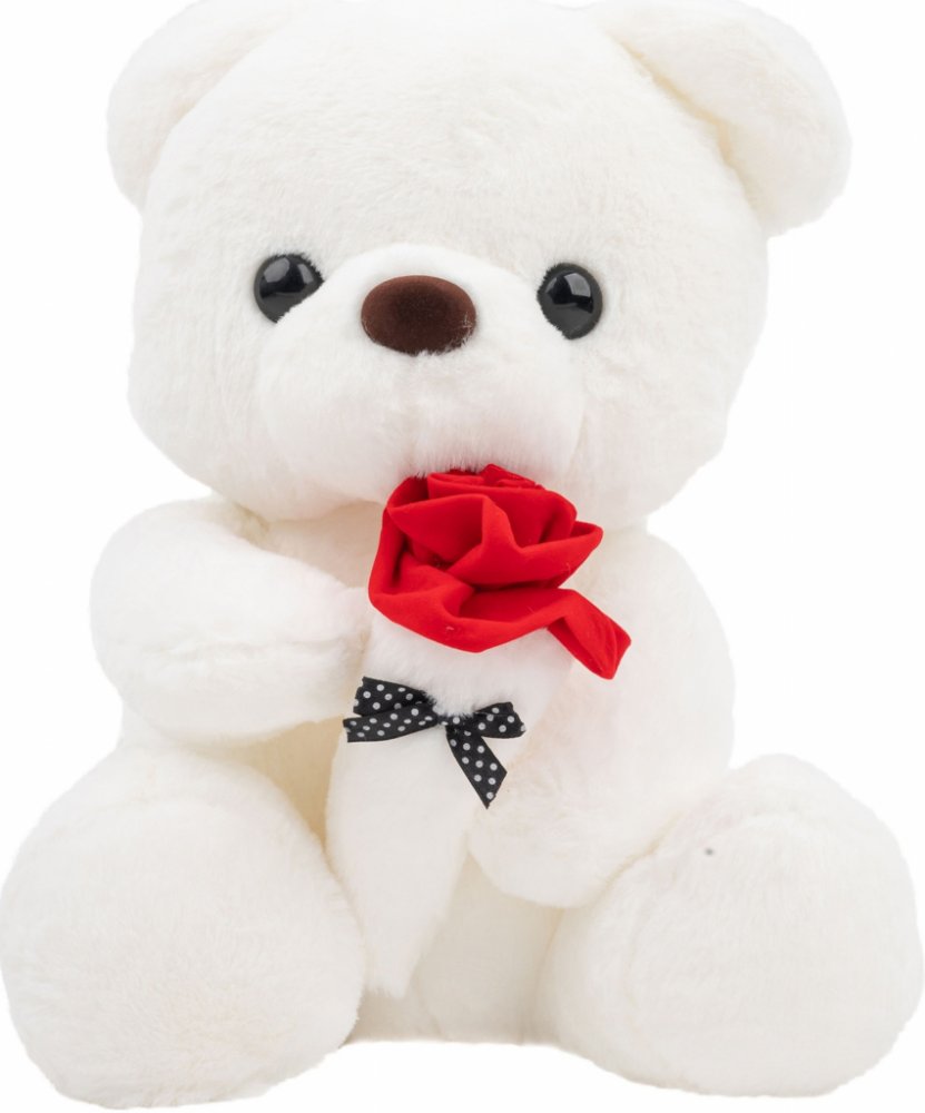 Bílý medvídek Plyšák a červenou růží – ideální Dárek na Valentýna