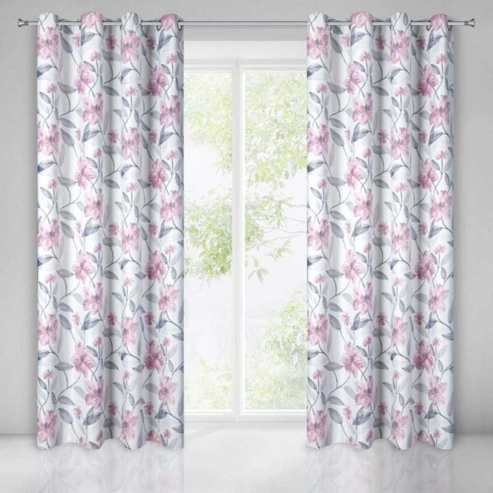 Bílý zatemňující závěs s pastelově růžovými květy Šírka 140 cm | Dĺžka 250 cm biela Zatemňovací závěsy Kruhy
