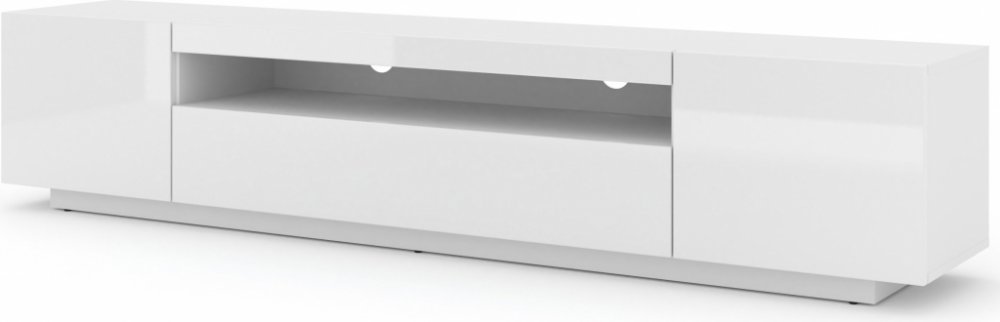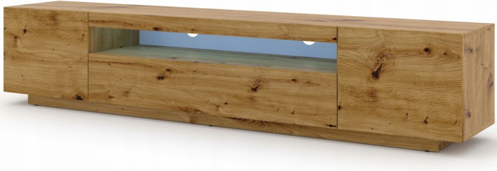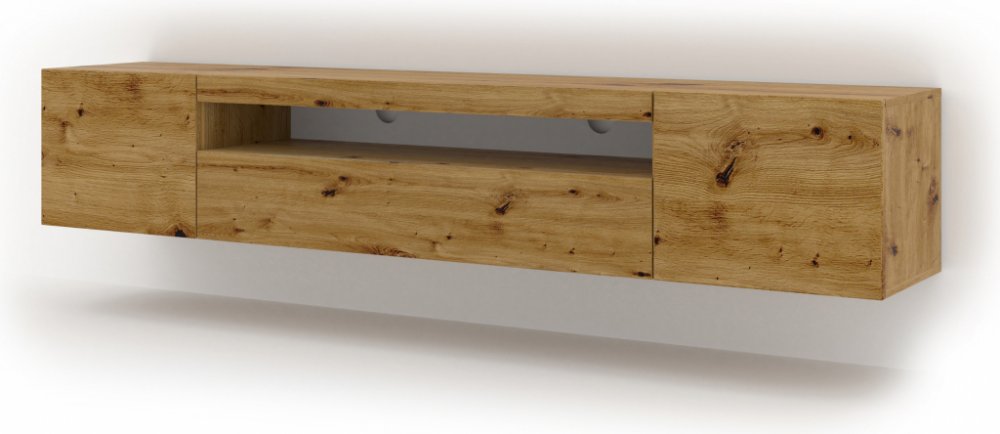 Dvě objemn boční skříňky budou ideální na drobn předměty, zatímco na širok polici můžete umístit ozdoby nebo audio zařízení. Podlouhlá výklopná skříňka ve střední části poskytuje prostor pro ukrytí kabelů a dálkových ovladačů. Důležitou výhodou konstrukce jsou bezúchytkov přední části, kter kromě estetických hodnot zvyšují funkčnost a usnadňují používání. Vysoká kvalita provedení a atraktivní cena jsou zárukou spokojenosti zákazníků.