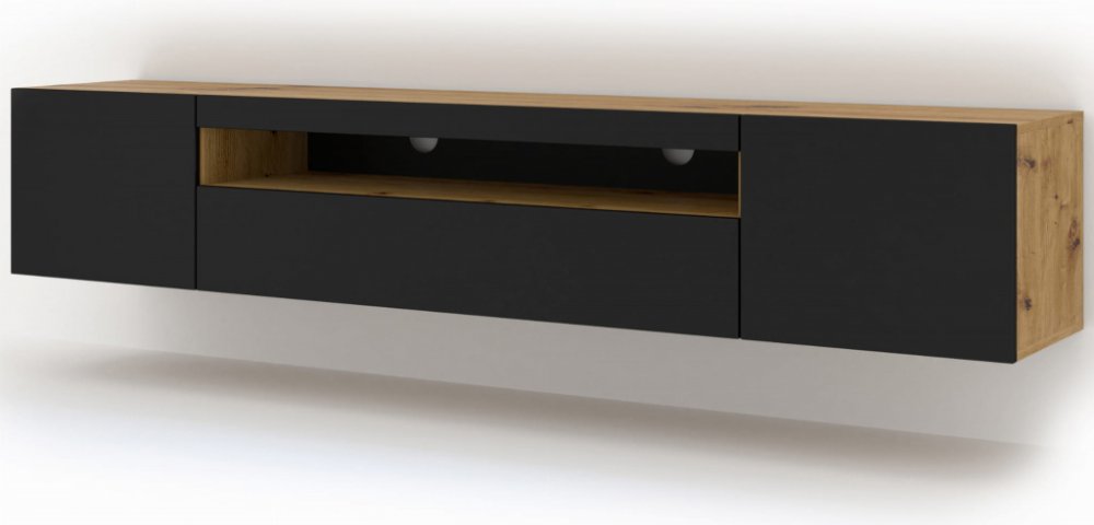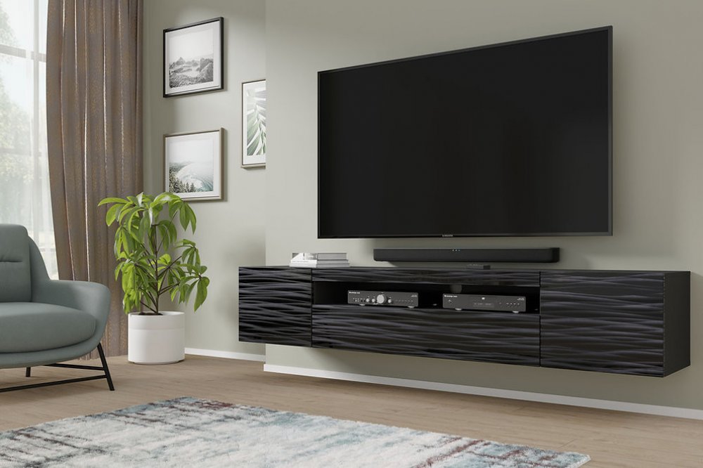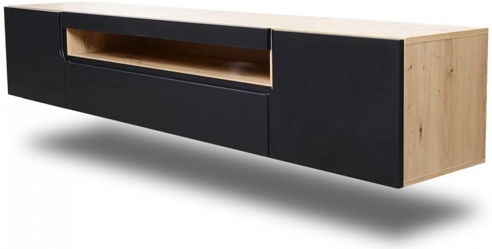 Skříňka TV závěsná Loftia 200 cm - černý/černý mat- BOGART.
