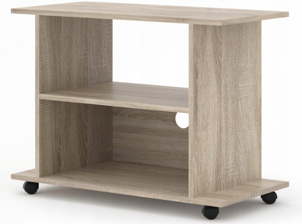 Pojízdný televizní stolek YOGI je ideální pro menší obývací pokoje nebo pokoje pro mládež. Díky svým rozměrům a ovladatelnosti jej snadno přemístíte tam, kam potřebujete. Stolek má dvě praktické otevřené police na knihy, konzole a další příslušenství. Ve spodní části je umístěn otvor pro kabeláž.