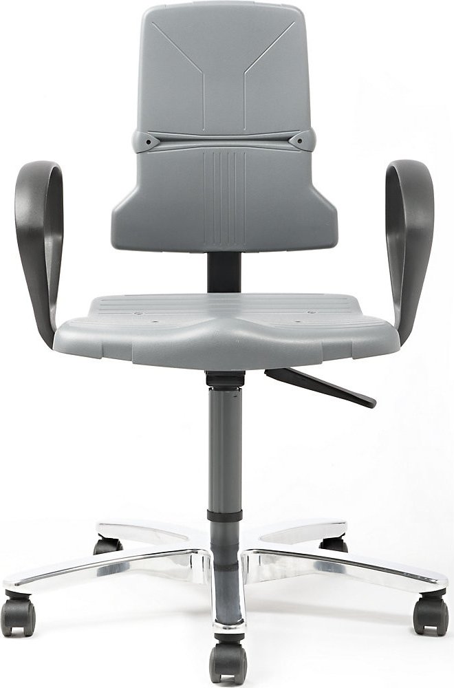 Pracovní otočná židle SINTEC, synchronní mechanika, podstavec z ocelové trubky s pěti nohami s patkami a pomůckou pro výstup. Dodávka = rozebráno. Provedení podstavce = s podlahovými patkami a pomůckou pro výstup. Mechanika sedáku = synchronní mechanika a regulace hmotnosti. Materiál sedací plochy a opěradla = polypropylen. Barva sedací plochy a opěradla = šedá. Způsob přestavování výšky = plynová pružina. Materiál podstavce = ocelová trubka, s povlakem z epoxidové pryskyřice. Rozsah přestavování výšky = 580 - 850 mm. Výška opěradla = 420 mm. Šířka sedáku = 480 mm. Hloubka sedáku = 430 mm. Nožní opěra = s. Provedení područek = bez područek. Kategorie = pracovní otočné židle. Nosnost = 120 kg. Barva podstavce = čedičová šedá RAL 7012. Opěradlo, nahoře úzké, pro optimální volnost pohybu. Široká, optimálně vytvarovaná opěra bederních obratlů. Sedáková skořepina pro pohodlné sezení. Protiskluzové vyklenutí. Zaoblená přední hrana sedáku. Zakrytování středního sloupku chrání plynovou pružinu před prachem. Naplocho se rozbíhající ocelový podstavec s nohou. Vynikající anatomická ergonomie pro zdravé sezení. Anatomicky tvarovaná plocha sedáku - automaticky podporuje správnou polohu při sezení. Pánev a páteř zůstávají v přirozeném S-tvaru. Dlouhá životnost a jistá budoucnost díky vyměnitelnému čalounění sedáku a opěradla, které se dodává jako příslušenství. Sedák a opěradlo z robustního, odolného polypropylenu. Plocha sedáku šířka x hloubka 480 x 430 mm. Výška opěradla 420 mm. Ocelový podstavec s pěti nohami s povlakem epoxidovou pryskyřicí. Synchronní mechanika s integrovanou regulací hmotnosti zajišťuje synchronní průběh pohybu sedáku a opěradla a permanentně se tím přizpůsobuje individuálním pohybům uživatele. Častá změna uvolňuje veškeré svalstvo, odlehčuje meziobratlové ploténky a zlepšuje tak prokrvení. Ergonomie: permanentní kontakt nebo synchronní mechanika s regulací hmotnosti. Sedák a opěradlo s přestavováním sklonu a ergonomickými detaily. Speciální vlastnosti: anatomická ergonomie a maximální flexibilita: Díky vyměnitelným čalouněným vložkám jsou tyto židle skutečnými mistry proměn. Vyznamenáno oceněním za inovaci spolkovou zemí Bádensko-Württembersko! Ergonomie Synchronní mechanika s regulací hmotnosti. Sedák a opěradlo s přestavováním sklonu a ergonomickými detaily. Dodávka v částečně rozebraném stavu - jednoduchá montáž.