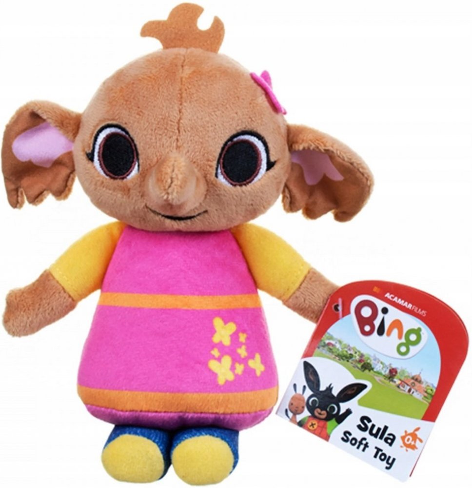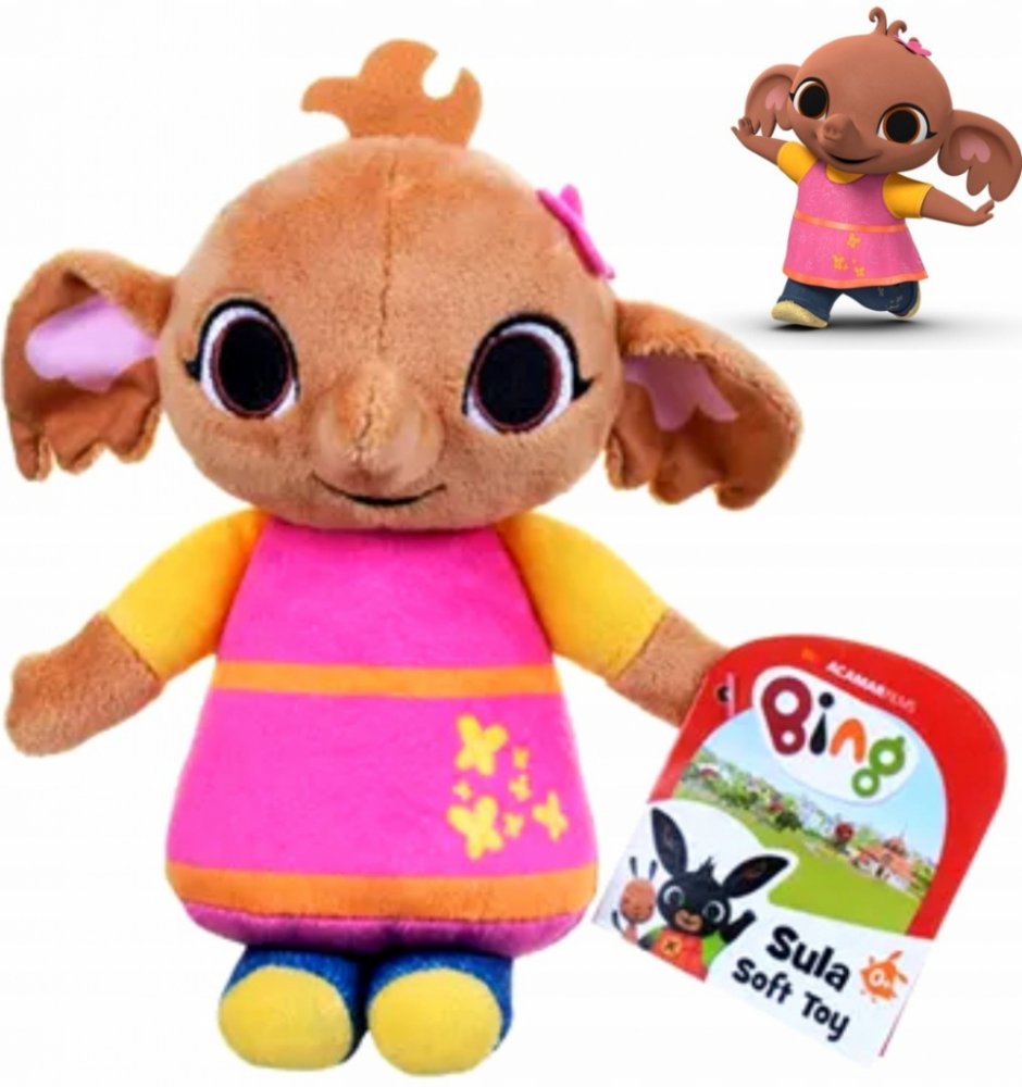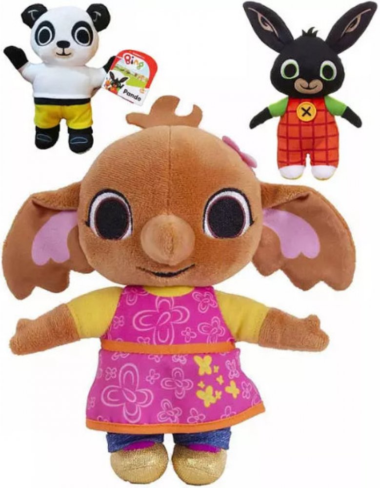Plyšové postavičky BING, SULA a PANDO z populární pohádky králíček Bing. To jsou hrdinové, které děti zbožňují. Kterého si vyberete vy? Králíčka Bing s černou srstí, zelenýma očima a špičatýma ušima, oblečeného v zeleném tričku a červených montérkách, zdobených žlutým knoflíkem? Nebo to bude slonice Sula oblečená v růžových šatech, zlatých botičkách a s motýlem na hlavě? Nebo to bude Pando v bílém...